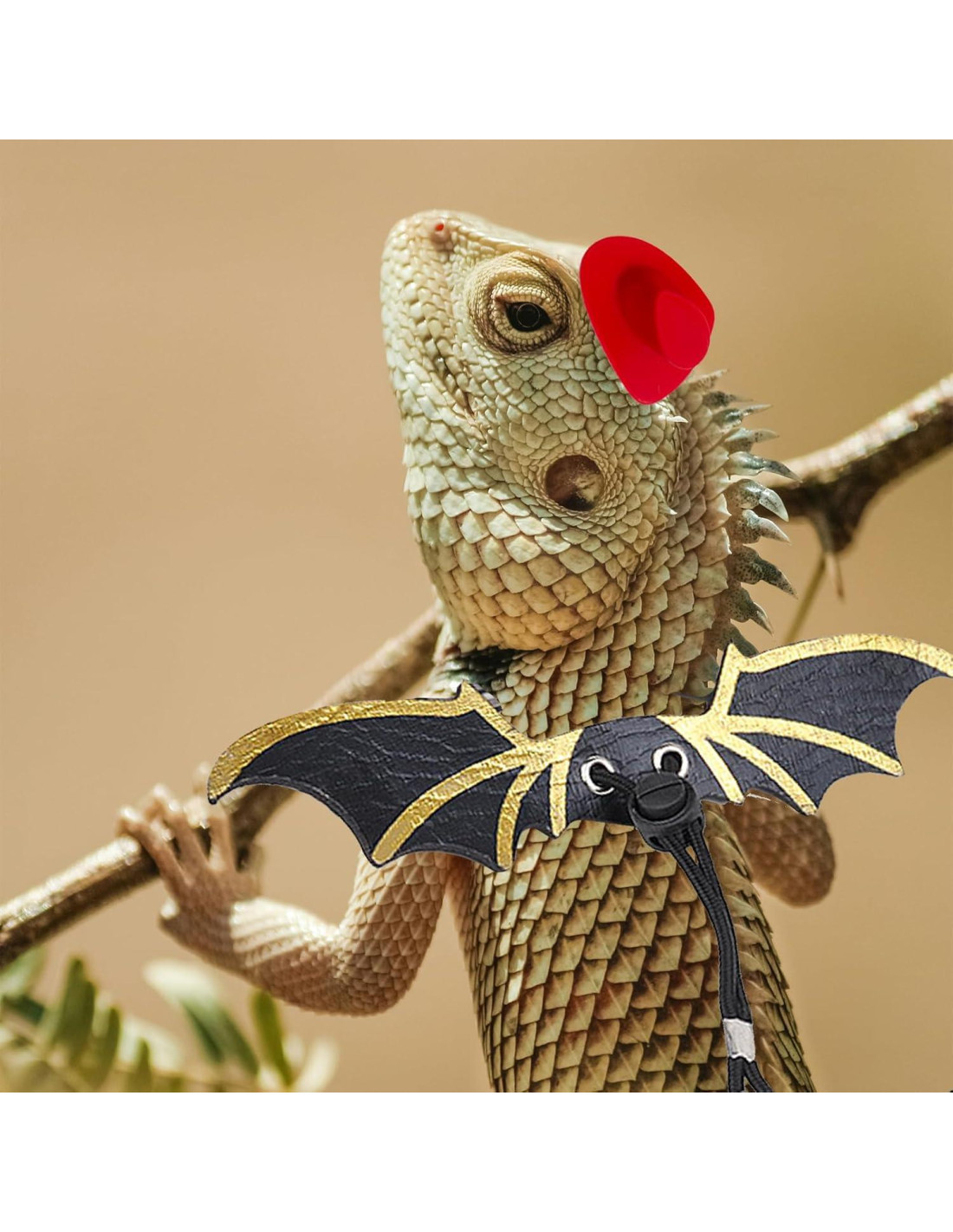 Lo que obtienes: Recibirás 3 arneses de diferentes tamaños, 1 correa para dragón barbudo, 2 mini sombreros negros y rojos, y 1 mini patinete, una combinación perfecta para anfibios y otros animales de compañía pequeños.