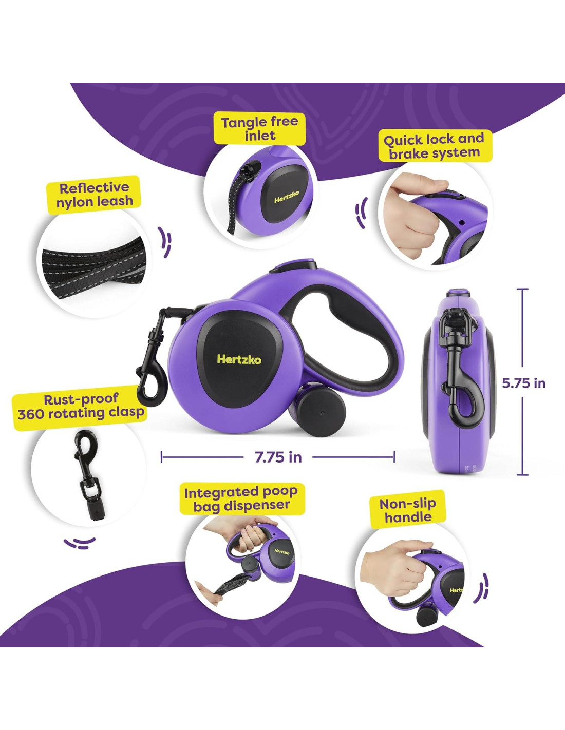 - QUÉ INCLUYE - Incluye una correa retráctil duradera, un soporte de bolsa de desechos adjunto y un rollo de 20 bolsas, todo lo que necesitas para paseos convenientes y sin estrés con tu compañero peludo.