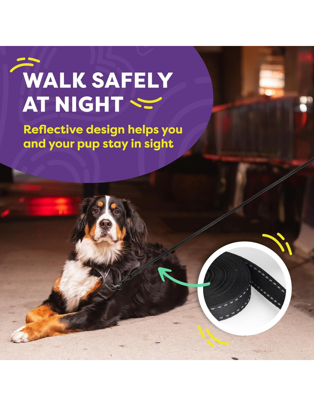 - CÓMODA, FUERTE Y DURADERA - Diseñada para perros de hasta 50 kg, esta correa resistente cuenta con una cinta de nylon fuerte de 4.88 m, un agarre cómodo y un mango antideslizante para paseos seguros y controlados.