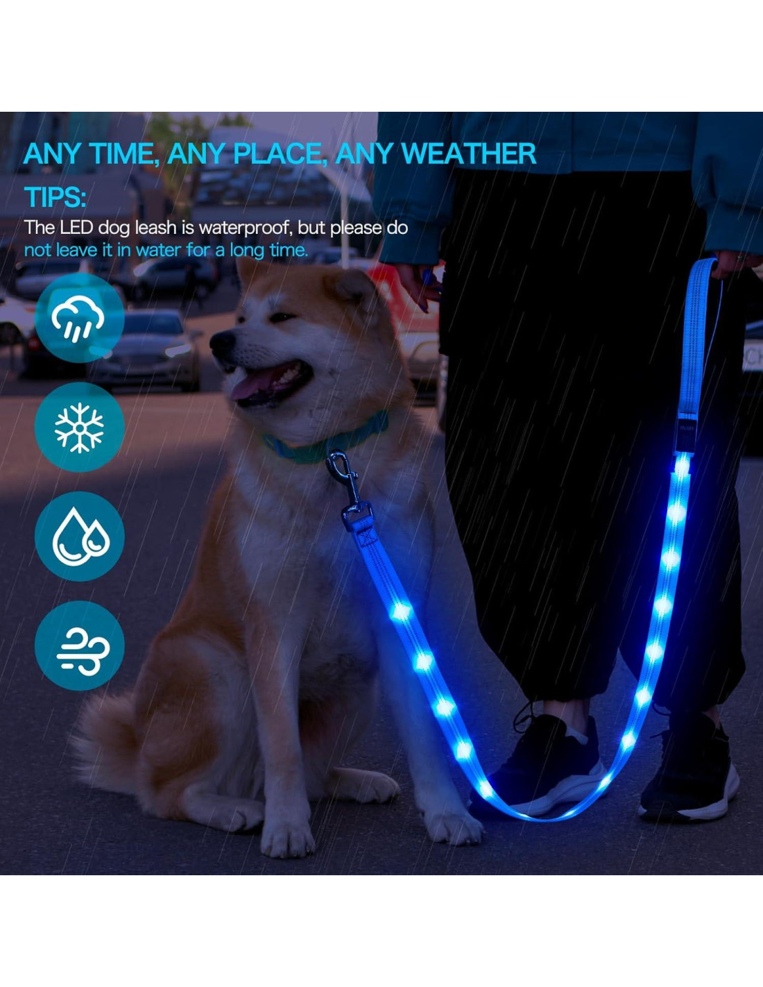 - Tres Modos de Brillo para Mayor Seguridad - Con tres modos de brillo: destello rápido, destello lento y luz constante, esta luz nocturna para perros puede cambiarse fácilmente con solo presionar un botón. Haz que tu paseo nocturno sea elegante y seguro con esta efectiva luz de correa para perros que actúa como luz para paseos.