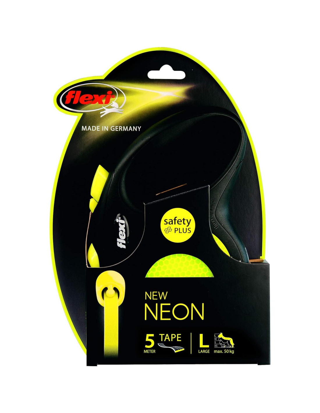 Color: Multi | Tamaño: Grande, 50 kg Correa retráctil Flexi New Neon grande cinta 5M, Neón. Gancho de snap cromado. Se puede personalizar con sistema de iluminación LED
