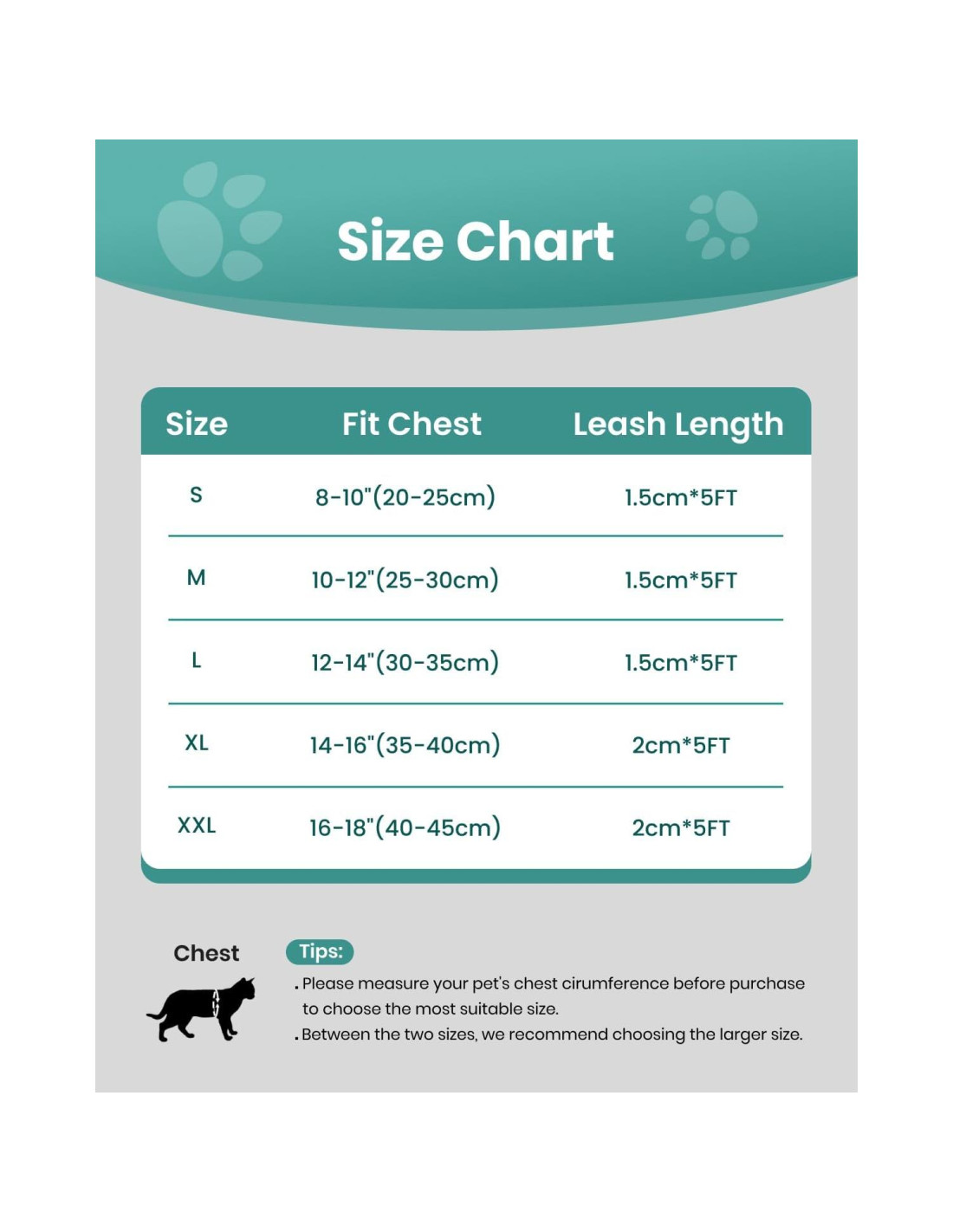 - CONSEJOS PARA EL ARNÉS DE GATO: ¡Ahora estamos mejorando nuestro arnés para gatos con más opciones de tamaño y color! Por favor mide el pecho de tu gato y elige el tamaño adecuado según la tabla de tamaños antes de comprar nuestro conjunto de arnés y correa para gatos, puede haber algunas diferencias entre las diferentes razas de gatos. Este arnés también es adecuado para perros pequeños, lo mismo, por favor mide el pecho de tu perro antes de comprar este arnés y correa a prueba de escape.