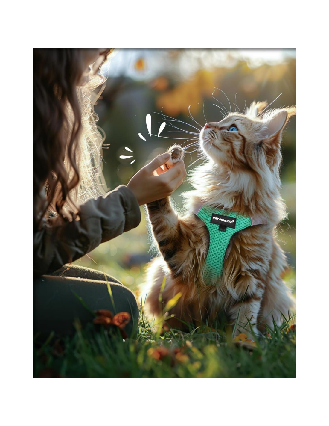- FÁCIL DE PONER Y SEGURO POR LA NOCHE: A diferencia de otras marcas de arneses que son problemáticos de usar, tu gato puede ponerse el arnés para caminar FAYOGOO en solo un paso. Muy fácil de poner y conveniente de quitar. Además, el diseño de tira reflectante de este arnés grande para gatos permite que tu gato camine de forma segura por la noche.