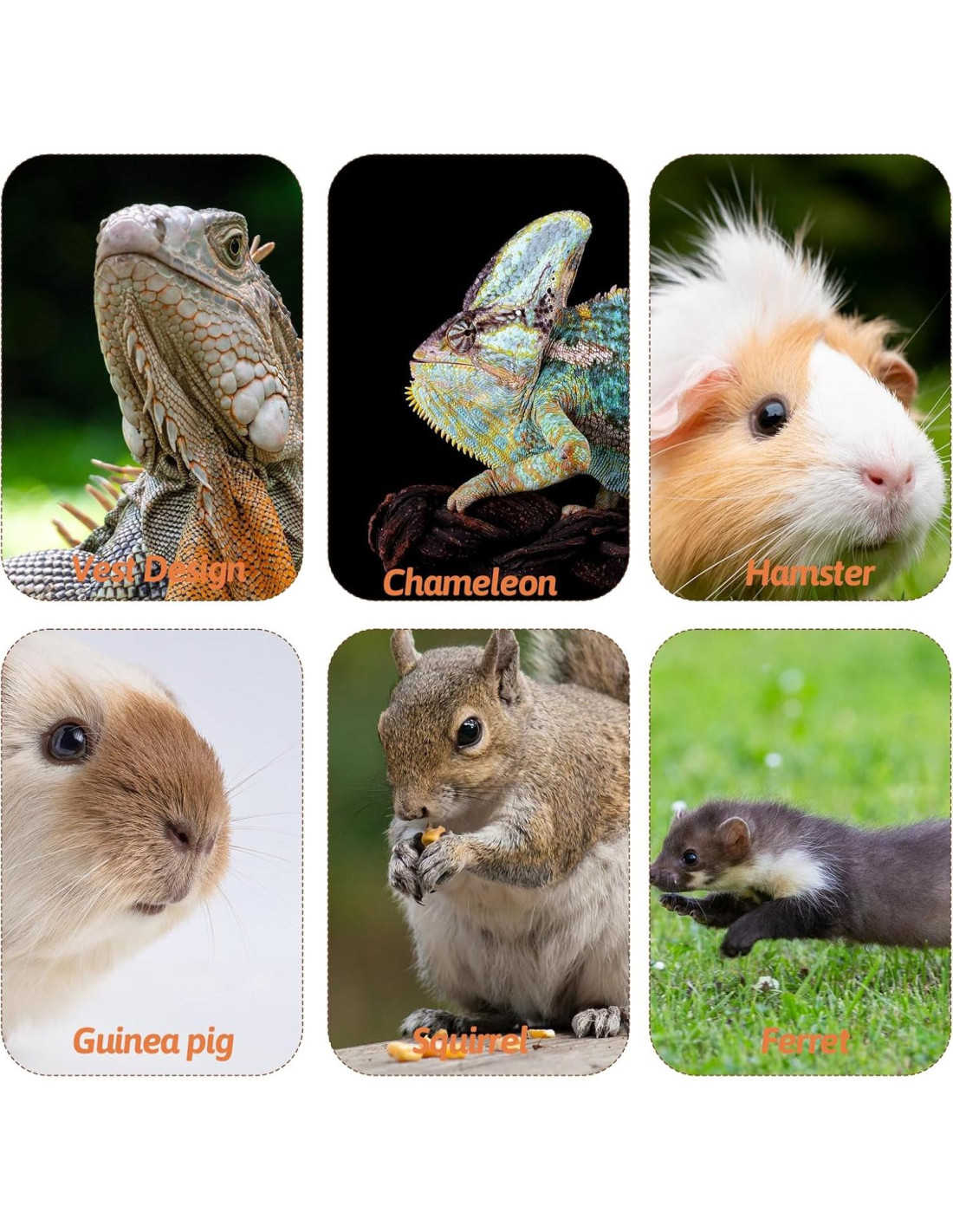 - [Uso Amplio] : Puede ajustar fácilmente el arnés para que se ajuste según la forma del cuerpo de sus mascotas. Adecuado para lagartos, ardillas, camaleones, ratas, hámsters, hurones y otros animales pequeños. Es un gran regalo para sus mascotas o amigos que tienen un animal de tamaño pequeño
