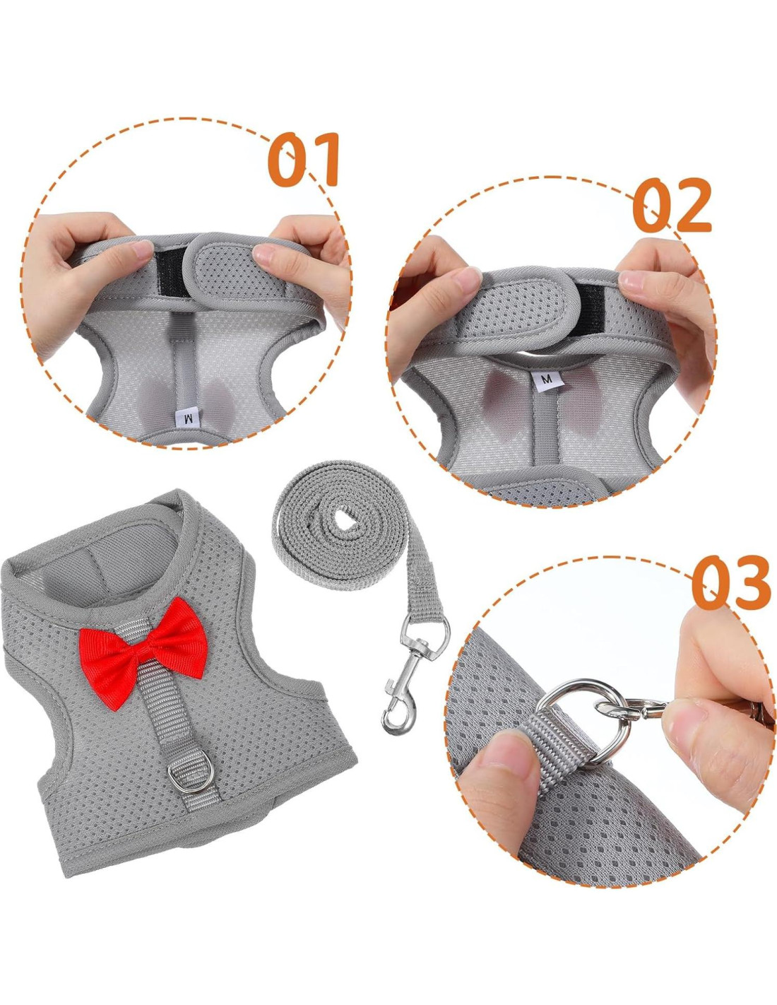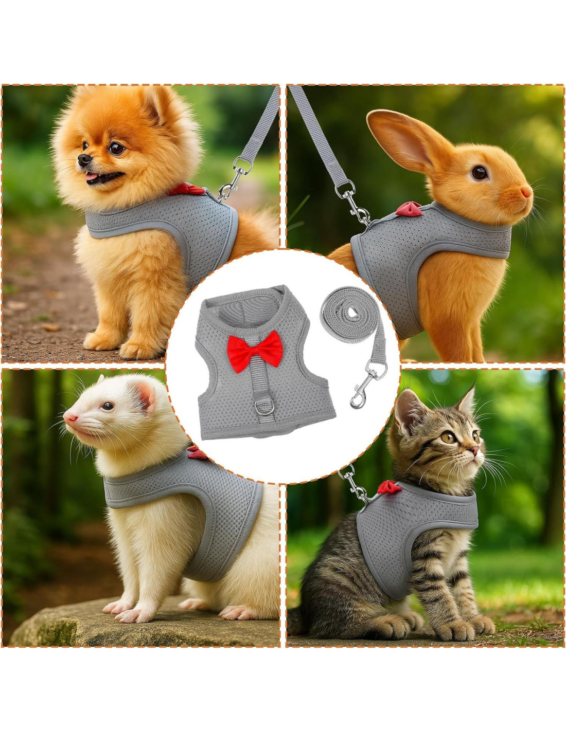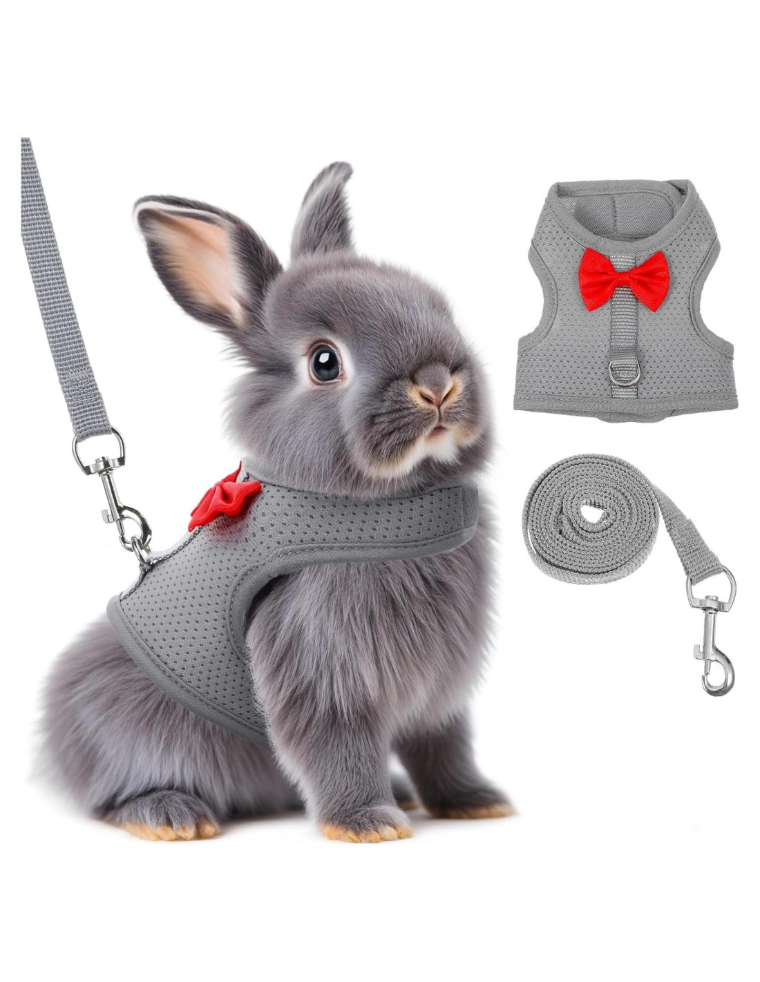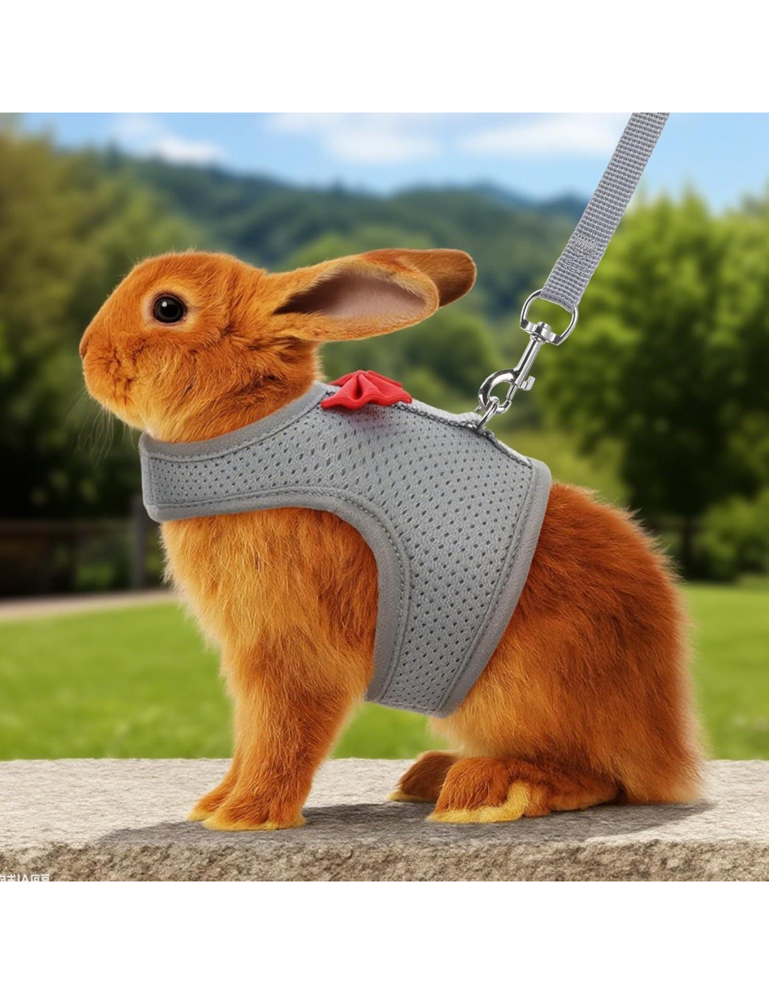 - [Diseño Cómodo] Fabricado con 95% poliéster y 5% metal, este arnés de malla transpirable para conejos asegura bordes suaves y acolchado elástico para comodidad durante todo el día. El material ligero reduce la presión sobre mascotas pequeñas como cobayas y hurones.