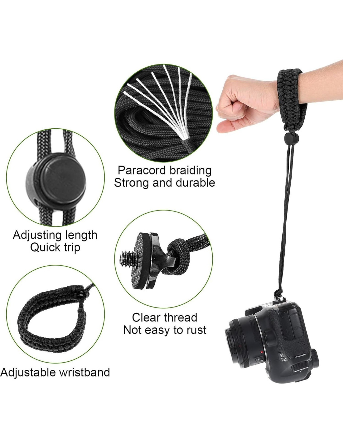 Lista de Empaque: Correa de Muñeca para Cámara Tamaño: Como en la Imagen Color: Material: Nylon, ABS, Aleación de Zinc