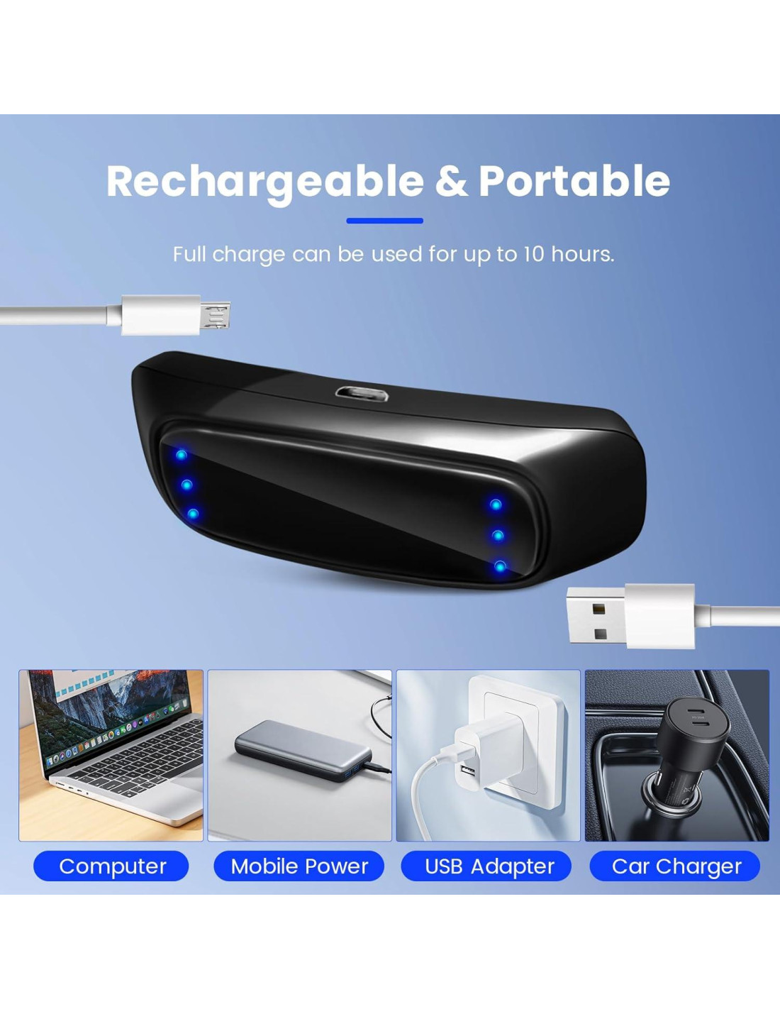 - Larga Duración de Batería: Cuando está completamente cargada, la batería proporciona hasta 10 horas de operación continua. Con un peso de solo 13.7g (0.48 oz), este dispositivo anti ronquidos compacto y liviano es convenientemente portátil, ya sea en casa, en la oficina o en un viaje de negocios, puedes usarlo en cualquier momento y lugar, y decir adiós a los ronquidos embarazosos.