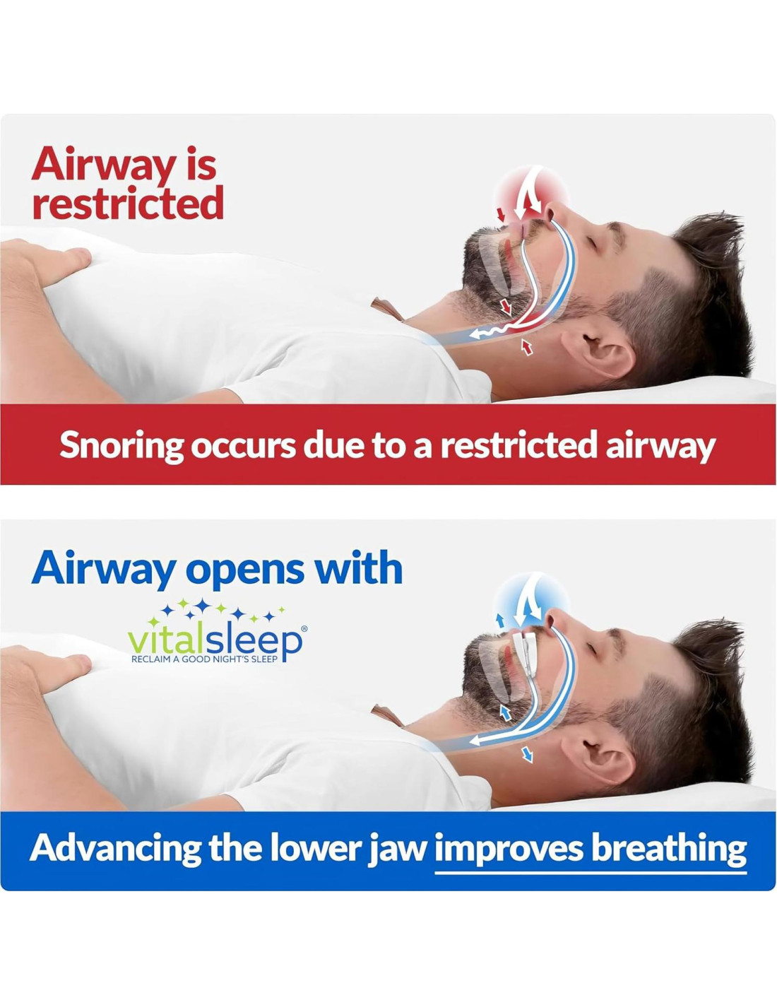 - DISPOSITIVO EFECTIVO PARA REDUCCIÓN DE RONQUIDOS: Trata los ronquidos con VitalSleep, un efectivo auxiliar del sueño y tratamiento para ronquidos. Estos dispositivos anti-ronquidos hechos en EE. UU. mantienen la mandíbula y la lengua hacia adelante, manteniendo las vías respiratorias abiertas para minimizar las vibraciones de los ronquidos. Experimenta un sueño más saludable, noches más tranquilas y una mejor calidad de descanso. Nuestros dispositivos anti-ronquidos se moldean a tus dientes para mayor comodidad personalizada. Ambos dispositivos anti-ronquidos vienen con estuches de viaje protectores.