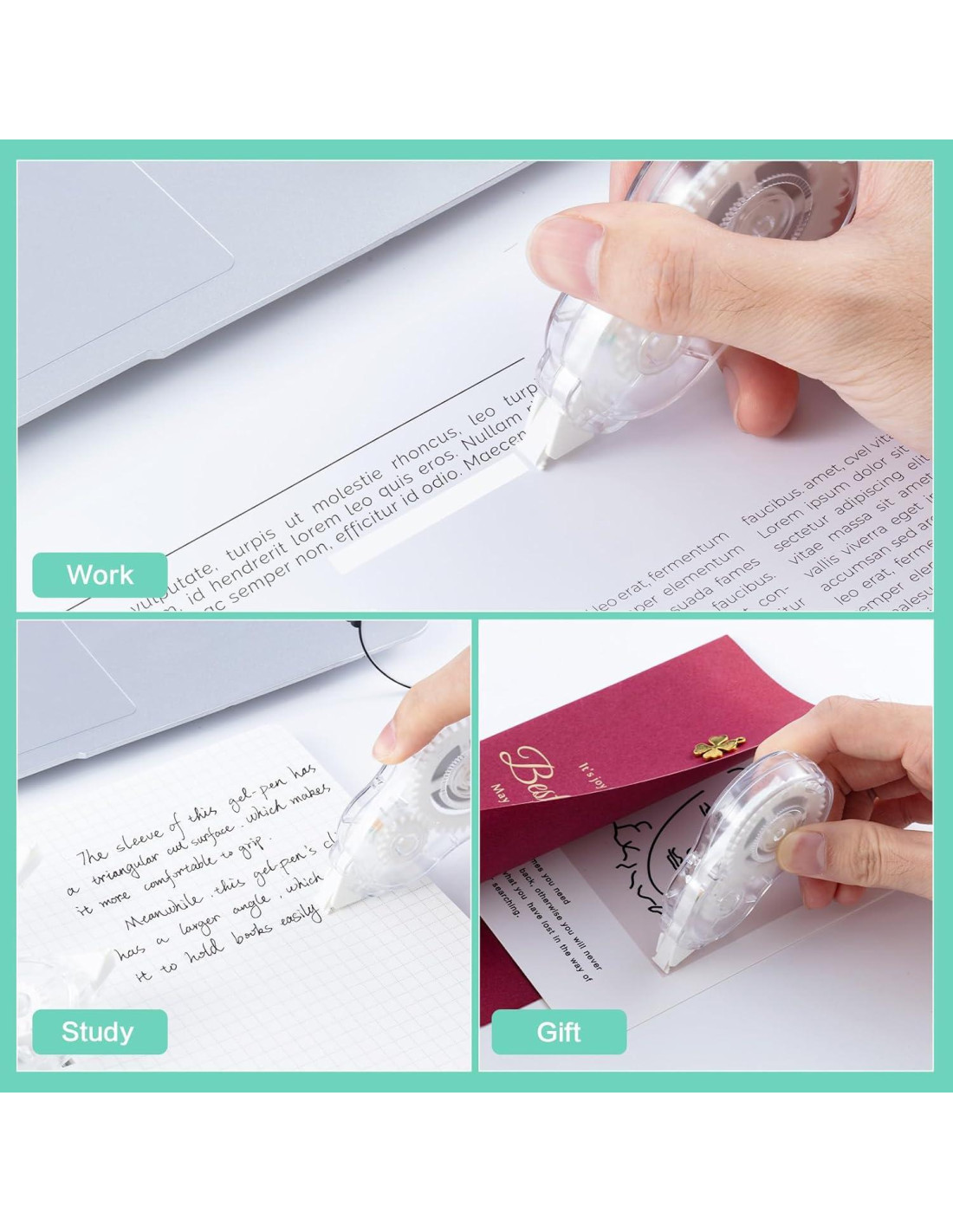 - [Fácil de Almacenar] Cada cinta correctora es ligera y fácil de llevar. Se puede poner fácilmente en una bolsa y se puede usar en casa, oficina o escuela. Es una herramienta de corrección esencial para tu escritura.