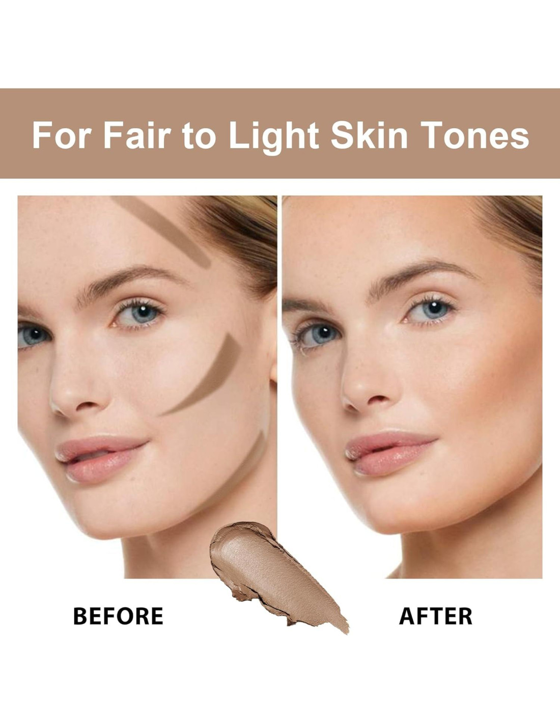 - Larga Duración y Resistente al Agua: Diseñada para la longevidad, esta barra de contorno de tonos fríos garantiza un aspecto impresionante y resistente a desvanecerse durante hasta 12 horas. La fórmula resistente al agua te acompaña durante el día con confianza, dejando atrás las preocupaciones de retoques y desvanecimiento.