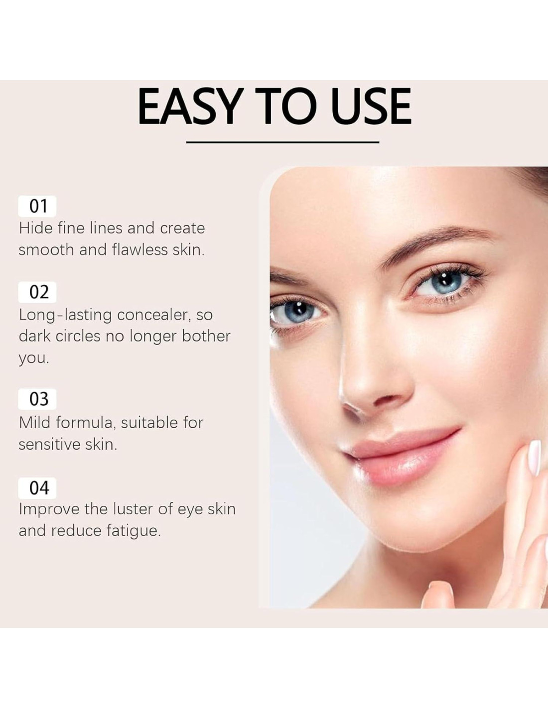 - Corrector de Ojeras---Esta crema correctora de ojeras contiene hidratantes de larga duración para equilibrar fácilmente la piel y es perfecta para crear un aspecto natural e impecable