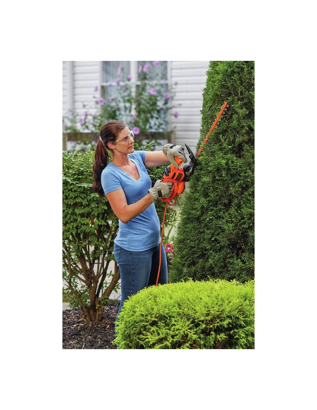 La CORTADORA DE SETOS ELÉCTRICA BLACK+DECKER de 16 pulgadas es la herramienta compacta y ligera ideal para el recorte rutinario de pequeños setos y arbustos. Con su diseño ligero, mango en T incorporado y gatillo de longitud completa, está hecha para menos fatiga y más control al cortar. Y la hoja de doble acción de acero endurecido corta de manera eficiente y crea menos vibración durante la operación. El sistema de retención de cable incorporado te permite trabajar más tiempo sin desconectar accidentalmente. El gatillo de longitud completa de la cortadora hace que operarla sea muy fácil. Para un uso casual y rutinario, esta cortadora de setos ligera y ágil es imprescindible.