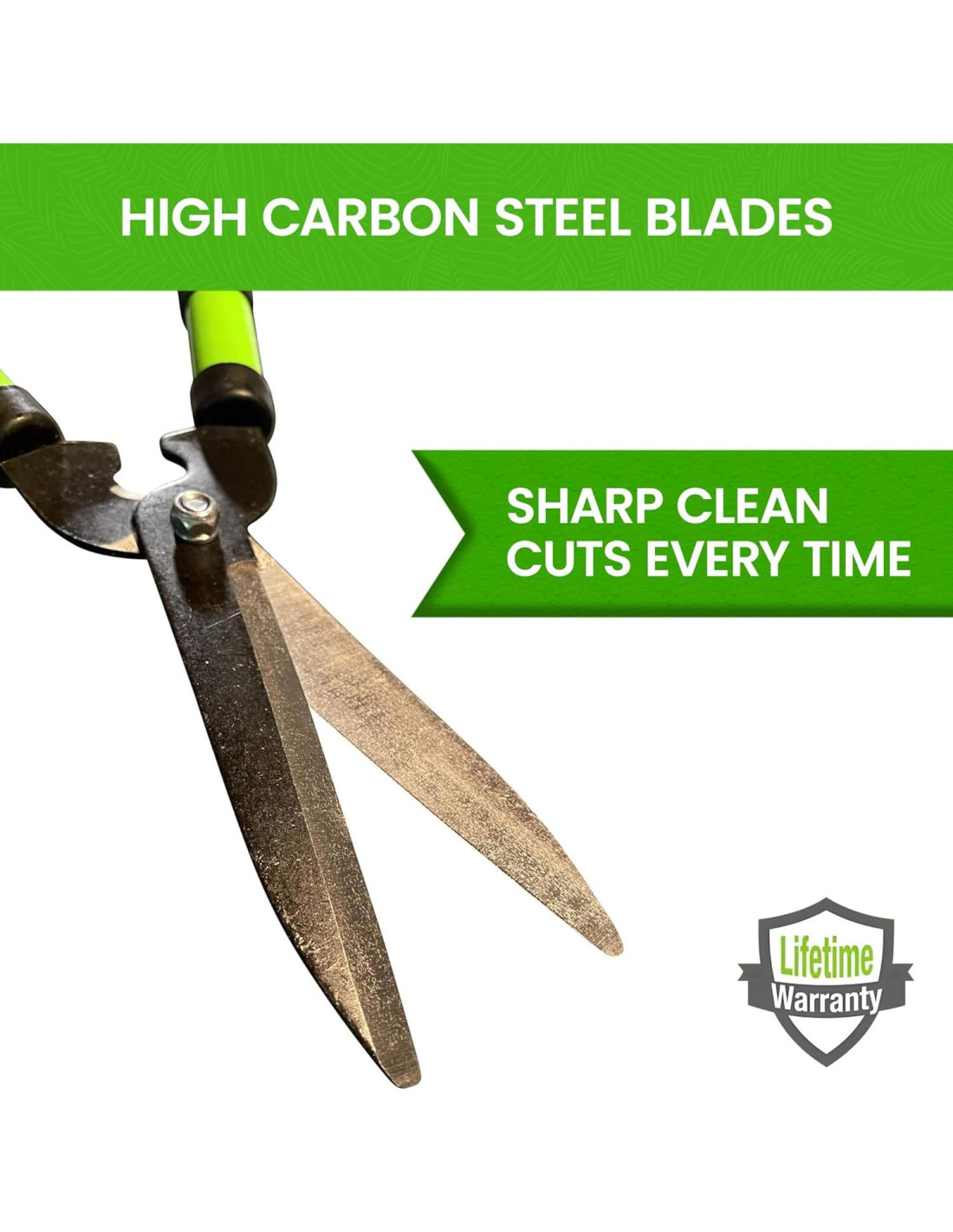 - CUCHILLAS DE ACERO ENDURECIDO: Forjadas con manganeso y acero al carbono de alta calidad para fuerza y durabilidad, las cuchillas se mantienen afiladas para producir cortes limpios y suaves cada vez para plantas saludables.