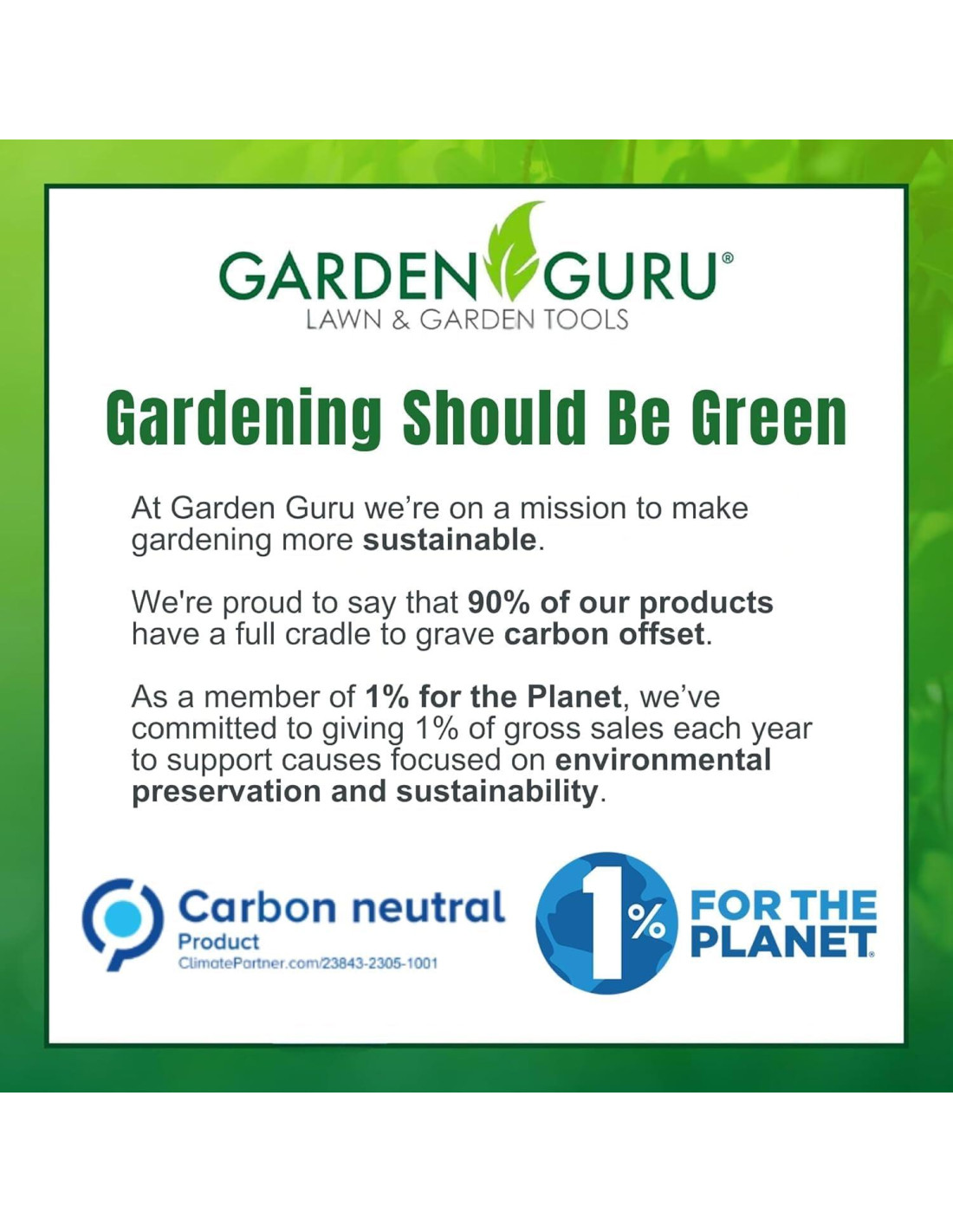 - Garden Guru ayuda a proteger el medio ambiente y reponer recursos como miembro de 1% For The Planet.