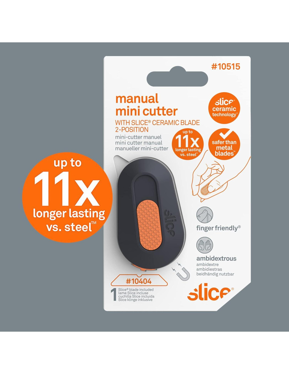 Descripción del Producto Cortador de Cajas Mini Slice, Retráctil Manual, Cortador de Cajas de Cerámica Seguro que Dura 11x Más que el Metal, Abre Cajas de Llave, 1 Paquete Del Fabricante Cortador Slice.