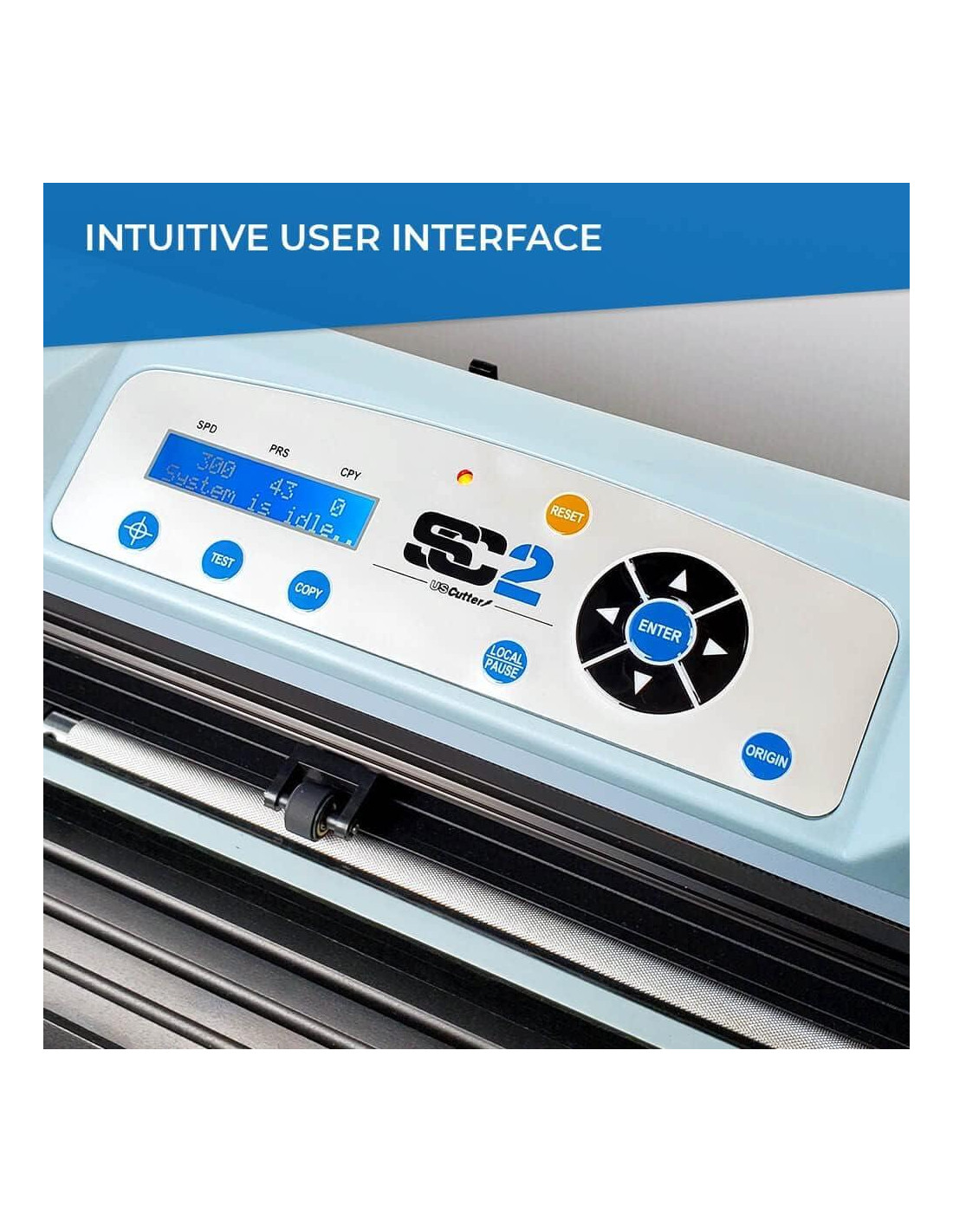 - CORTADORA DE VINILO SC2 incluye un soporte y canasta de captura para proteger los trabajos de corte. El modelo mejorado es más rápido, silencioso, con más memoria para archivos de corte más grandes.