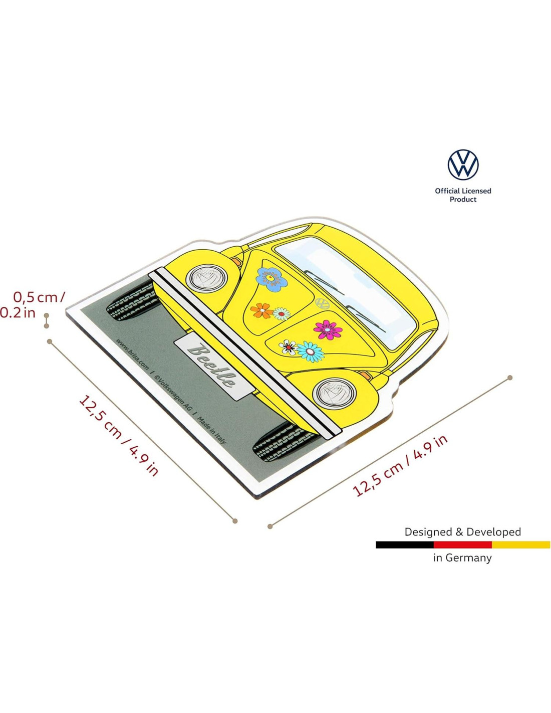 - FRENTE DE BEETLE: Este icónico raspador de hielo es de color amarillo, adornado con flores coloridas y la matrícula "Beetle". Dimensiones: 12.5 x 12.5 x 0.3 cm (4.9 x 4.9 x 0.1 pulgadas).