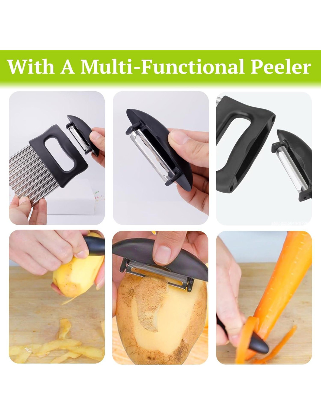 - Cortador Crinkle 2 en 1: Desbloquea un mundo de creatividad culinaria con este versátil cortador de patatas. Úsalo para picar verduras, cortar frutas, hacer papas fritas en forma de gofre. Pelado suave y sin esfuerzo.
