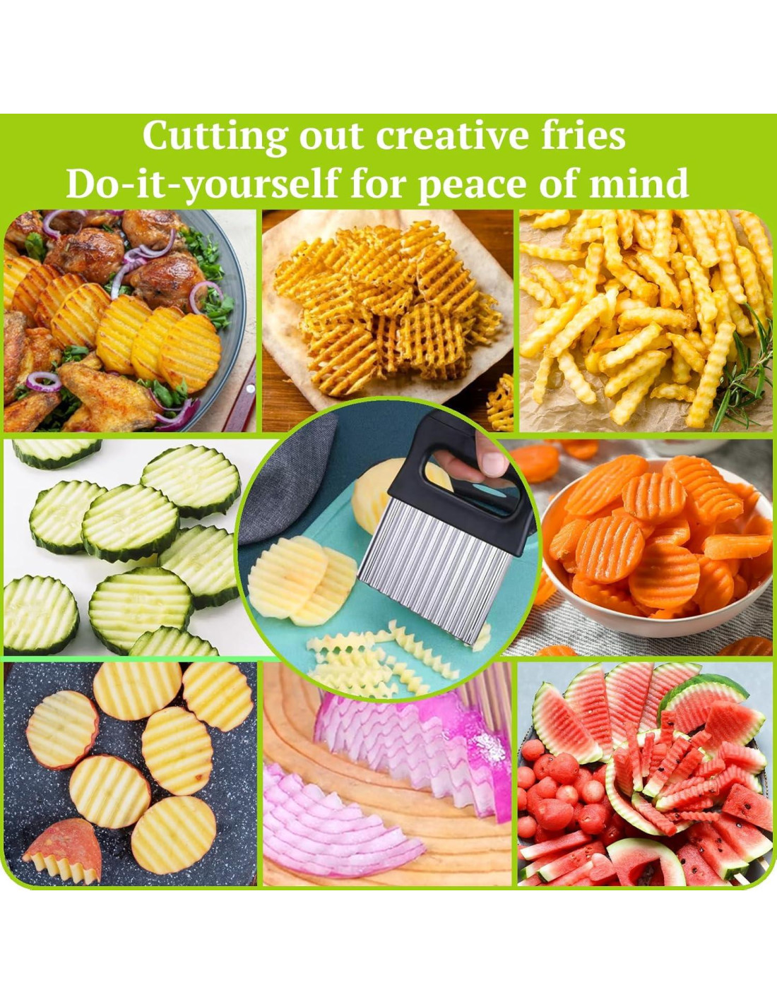 - Haz Papas Fritas Crinkle al Estilo de Restaurante: Usa este cortador de patatas crinkle para hacer papas fritas crinkle al estilo de restaurante, chips de patata ondulados y chips de pepinillo ondulados en casa.