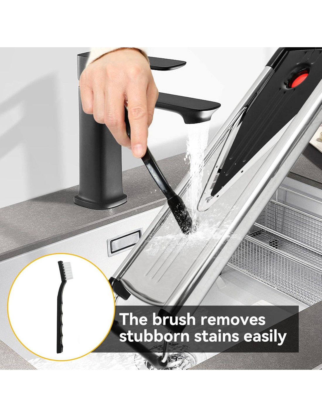 - La máquina de corte de verduras que ahorra más tiempo. Nuestros cortadores de alimentos de mandolina pueden establecer el grosor de los cortes, desmenuzados y pasteles para que puedas cortar con las manos libres. Y un gofre. Con una preparación y limpieza más rápidas, puedes vivir tu mejor vida todos los días. Te permite pasar menos tiempo preparando comida y disfrutar de más tiempo.