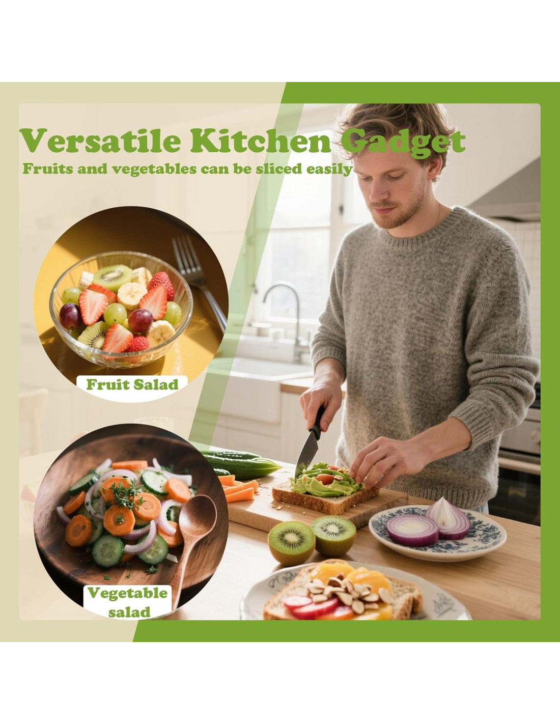- Gadget de cocina versátil: Este cortador de huevos funciona bien con frutas suaves como fresas, kiwi, uvas, champiñones y ajo. Este cortador de frutas las corta en piezas de 4 mm, lo que lo hace ideal para ensaladas, postres o decorar platos principales