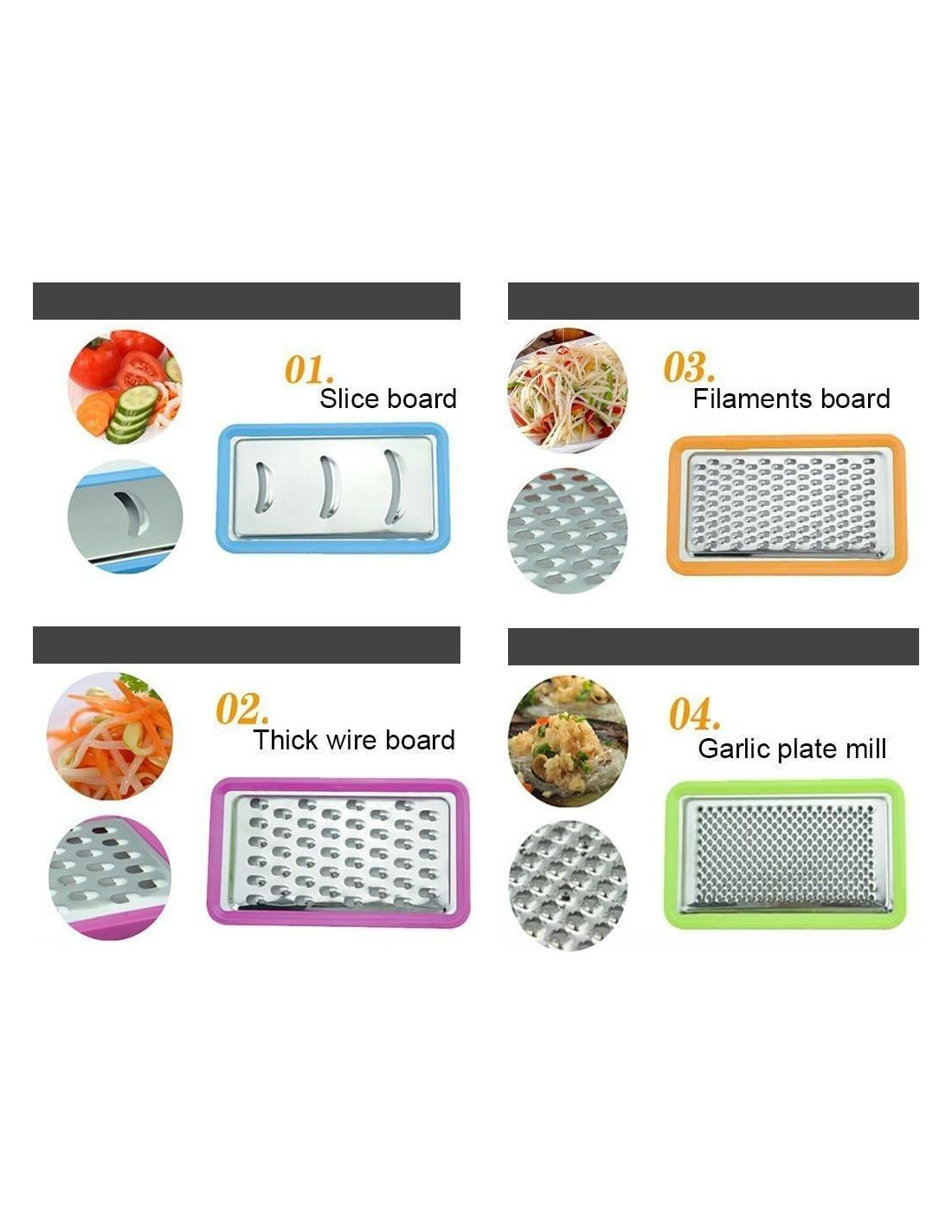 - CUATRO TIPOS DE CUCHILLAS. Este cortador de verduras puede rallar, cortar, picar relleno, puré de papas y papas fritas. El cuchillo recto puede cortar papas, cebollas, pepinos, pimientos verdes, tomates y berenjenas.