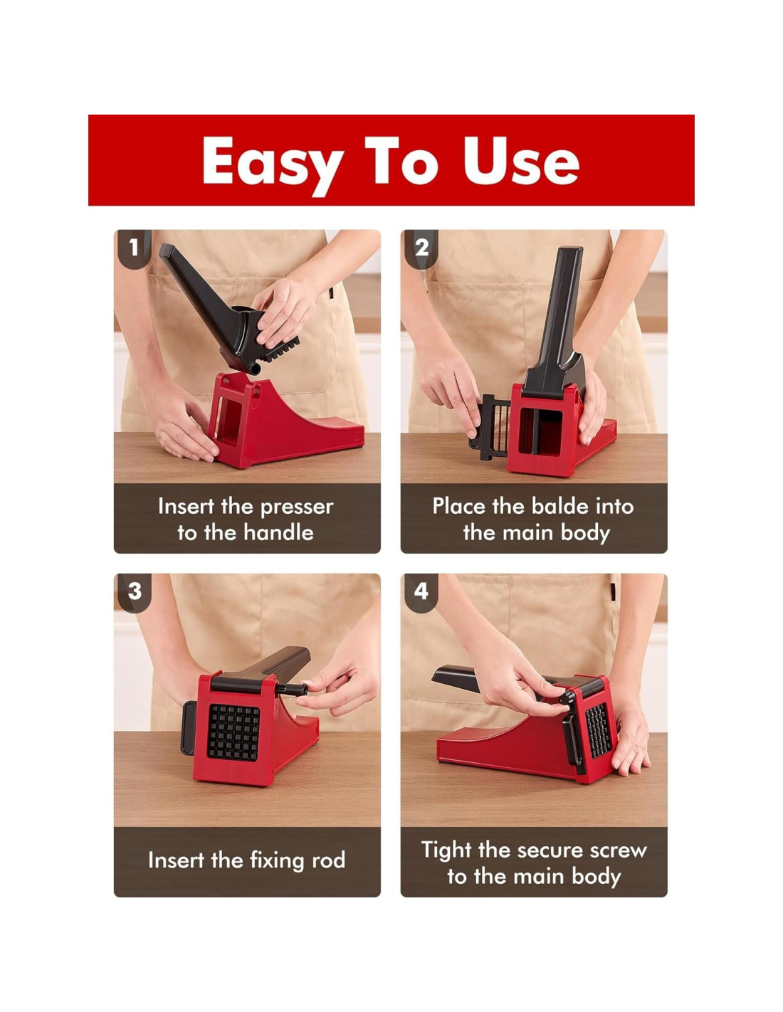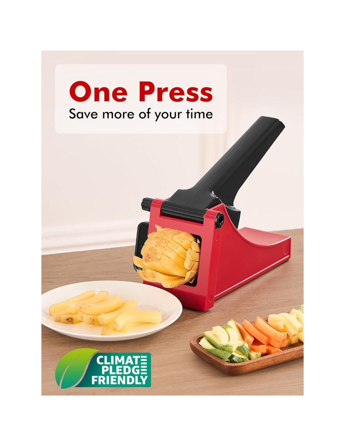 - Preparación Sin Esfuerzo: El mango extendido ofrece mucho apalancamiento para empujar las papas con facilidad y hacer que se dividan en varias tiras de 3/8 pulgadas (0,95 cm) sin esfuerzo. Las puntas de goma antideslizantes en la parte inferior aseguran un corte estable. Corta rápido y fácil de usar