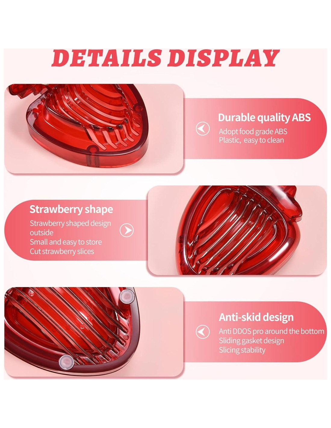 - EFICAZ - Una herramienta de cocina perfecta que te permite obtener fresas en rodajas rápida y fácilmente. Con este juego de Cortador de Fresas, puedes obtener rápidamente fresas en rodajas, preparar la deliciosa ensalada o cobertura para helados, parfaits, pasteles y otros postres para fiestas y otras ocasiones! No solo es para fresas, sino también para huevos y frutas pequeñas como uvas o tomates.