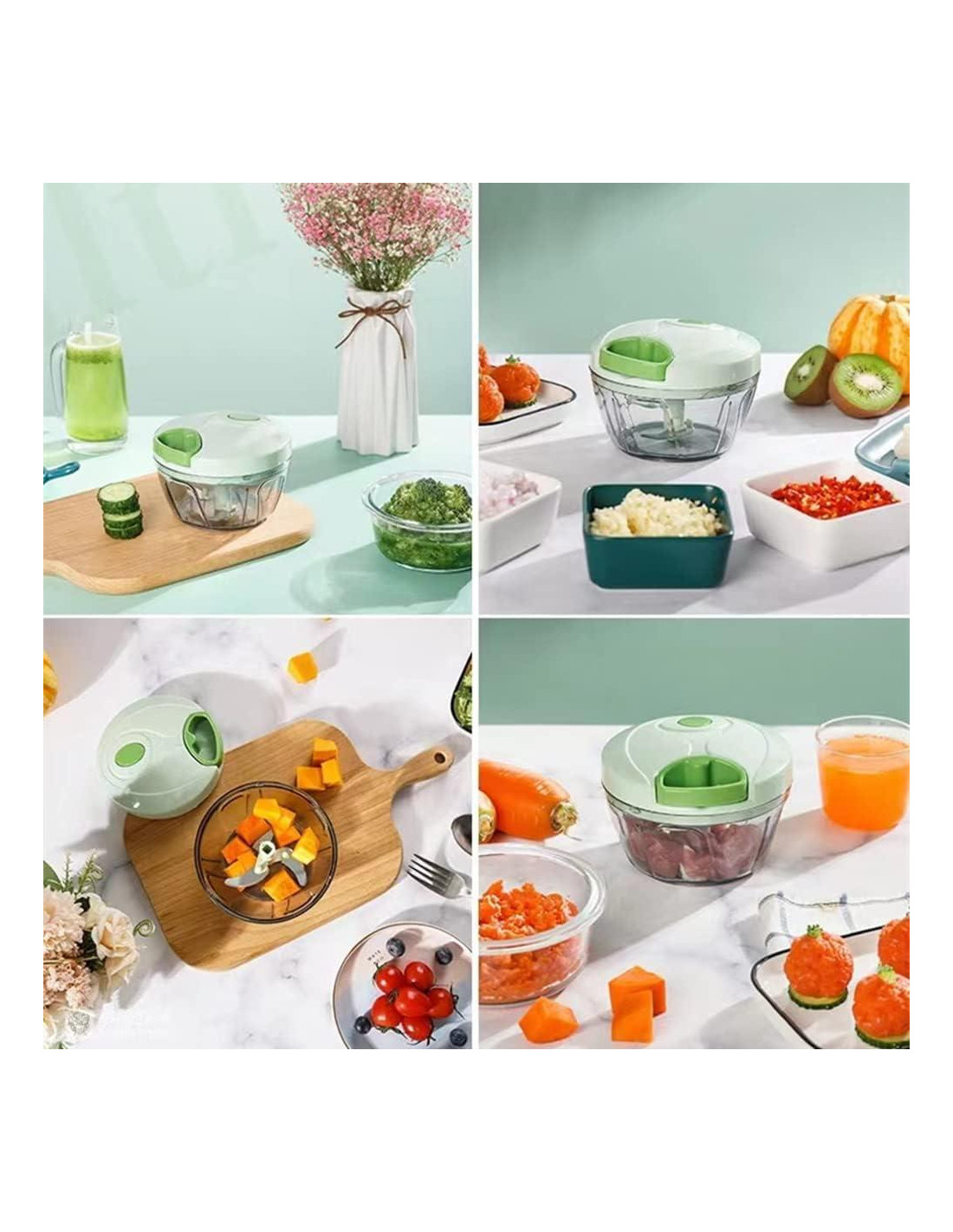 - Uso Multipropósito El pequeño cortador de alimentos con contenedor puede manejar muchos alimentos como jengibre, verduras, nueces, hierbas, ajo, carnes sin hueso, zanahorias, tomates, aguacate, etc. O si te gusta hacer batidos de frutas, el cortador mini portátil es adecuado para la cocina, viajes y camping.