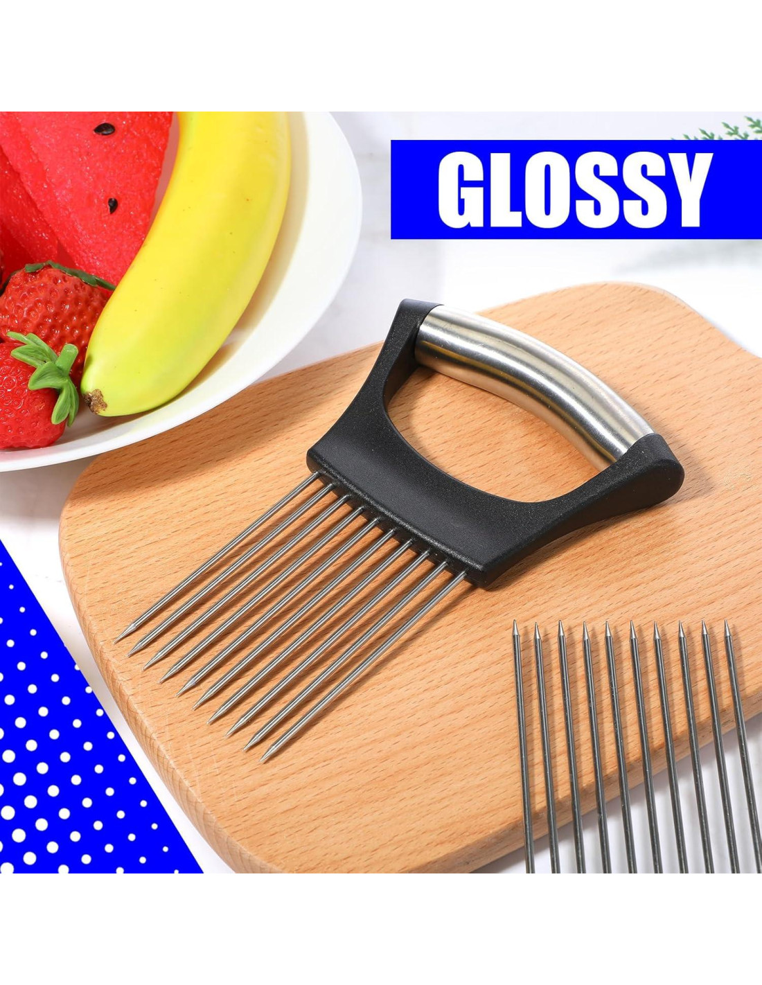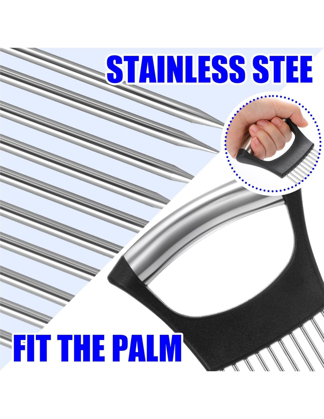- Amplia Aplicación: el cortador de cebolla de acero inoxidable se puede aplicar a una amplia variedad de frutas y verduras como tomates, papas, manzanas, huevos, cítricos, y más