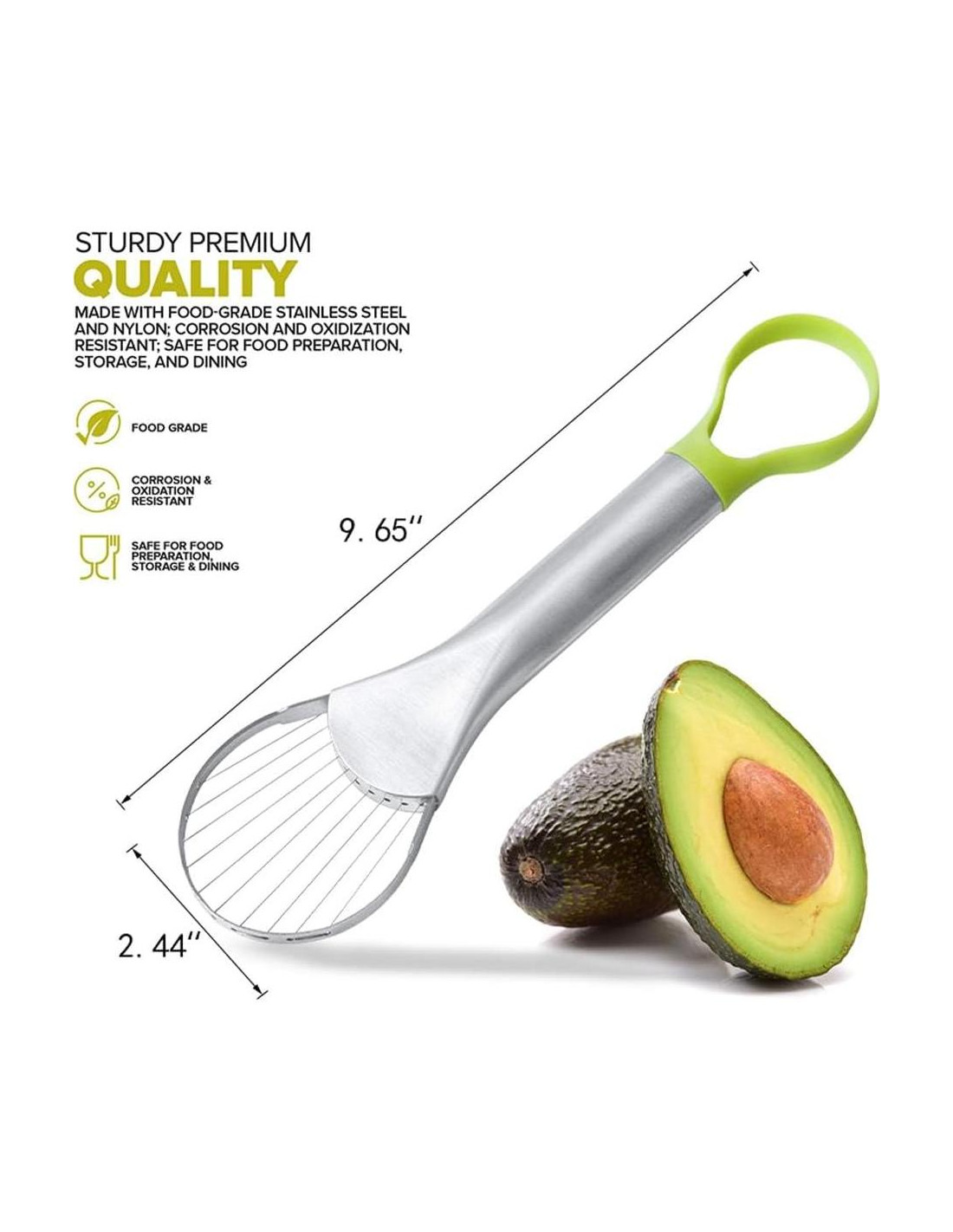 - El anillo de nailon facilita la extracción del hueso sin dañar la fruta del aguacate.