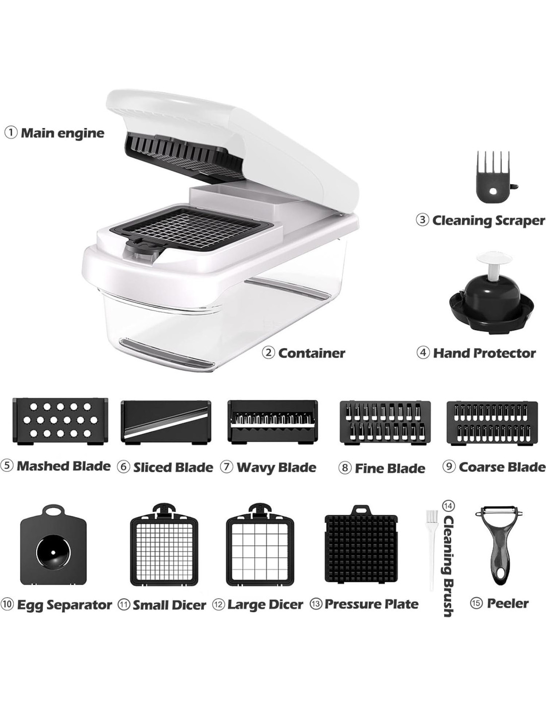 - Número de modelo del artículo: JAYVAR 15-en-1 Picadores de Verduras