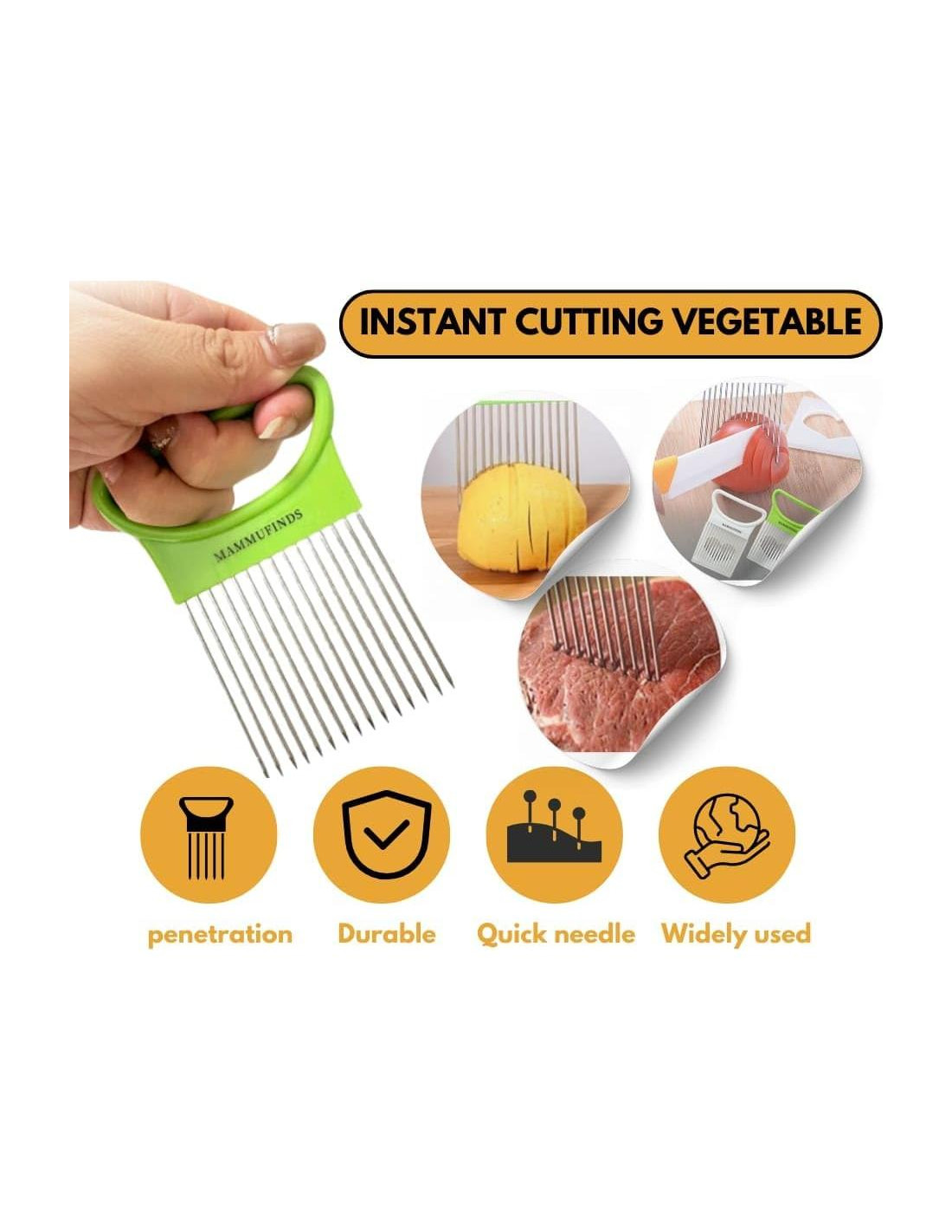 - Juego de utensilios de cocina versátil - Este cortador de cebolla multifuncional, cortador de arrugas y soporte para verduras facilitan la preparación de alimentos, ya sea que estés cortando tomates, papas o más.