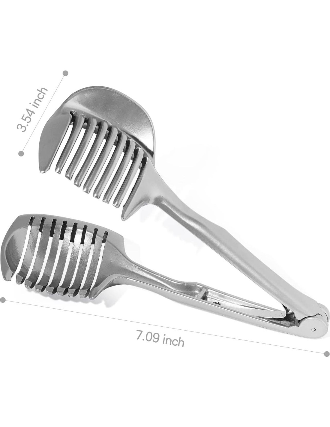 Especificaciones del Cortador de Tomate y Limón: Material: acero inoxidable Color: Plateado Dimensiones: 17.95 cm (L) * 8.99 cm (W) Paquete: 1* Cortador de Tomate y Limón Este es un buen tenedor de cocina para sostener el cortador, te guía para cortar el tomate, la papa y las frutas en rebanadas hermosas y de buen aspecto.