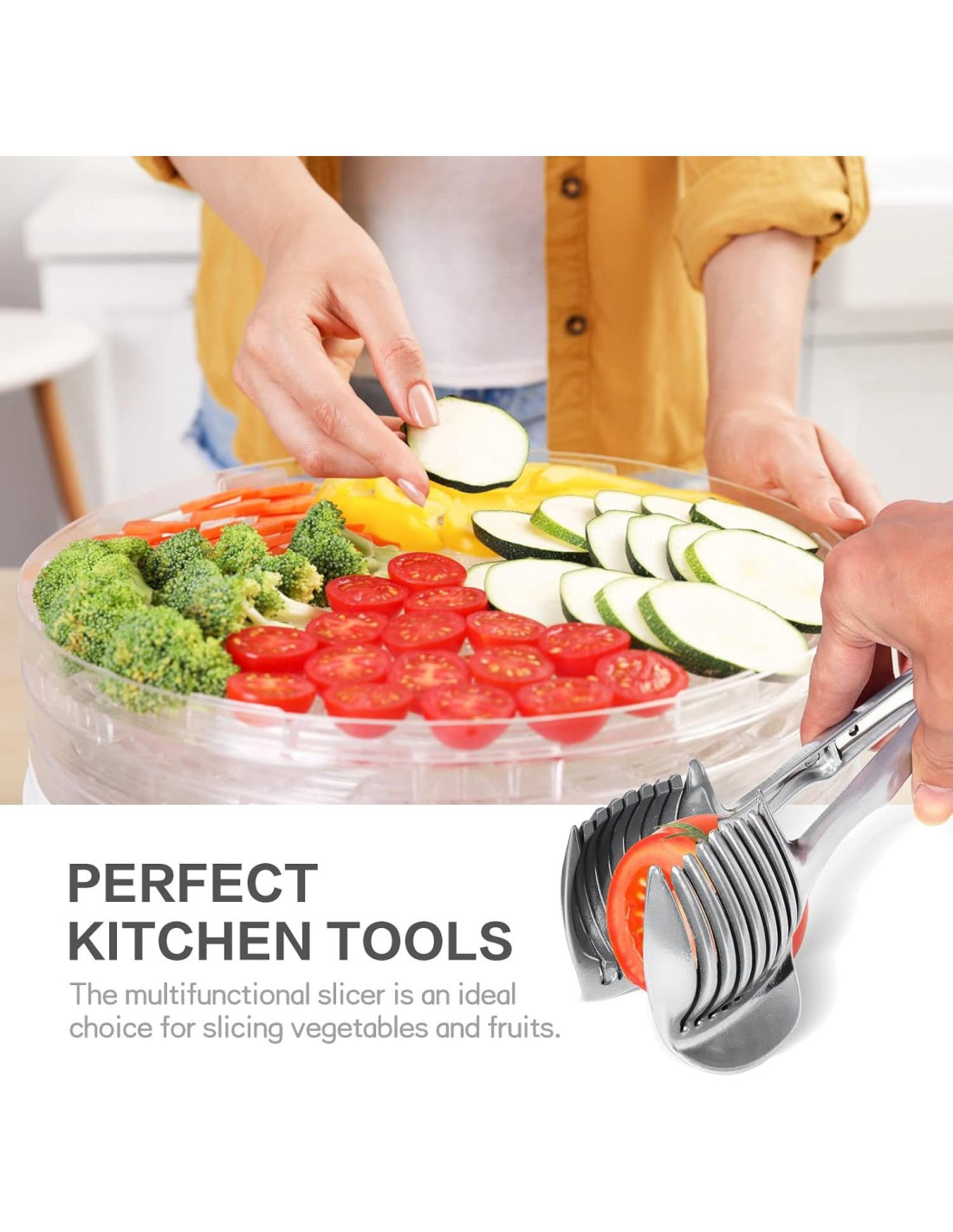 - Ayuda de corte diseñada convenientemente, herramienta perfecta para cualquier tarea en la cocina, ideal para tomates, cebollas, limones, frutas cítricas y más.