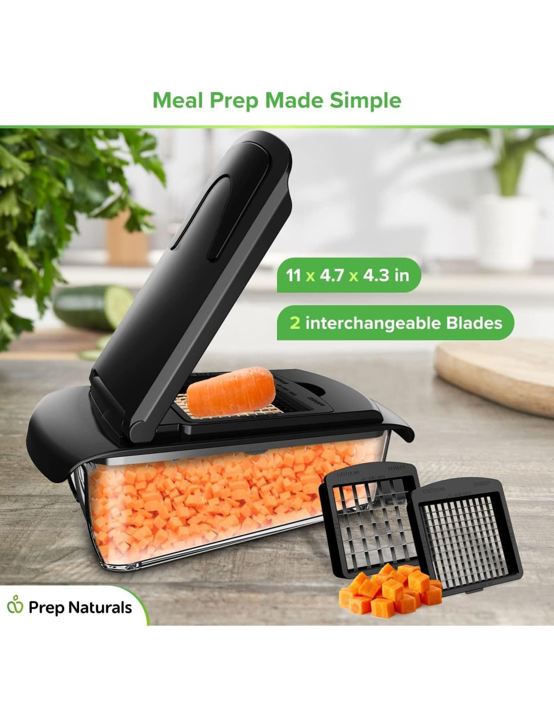 - 2 Cuchillas Intercambiables - Este picador de verduras esencial incluye un cortador fino y un cortador mediano para picar tus verduras grandes o pequeñas sin esfuerzo. Prepara cualquier comida sin el desorden de un cuchillo y una tabla... o millones de accesorios sin usar!