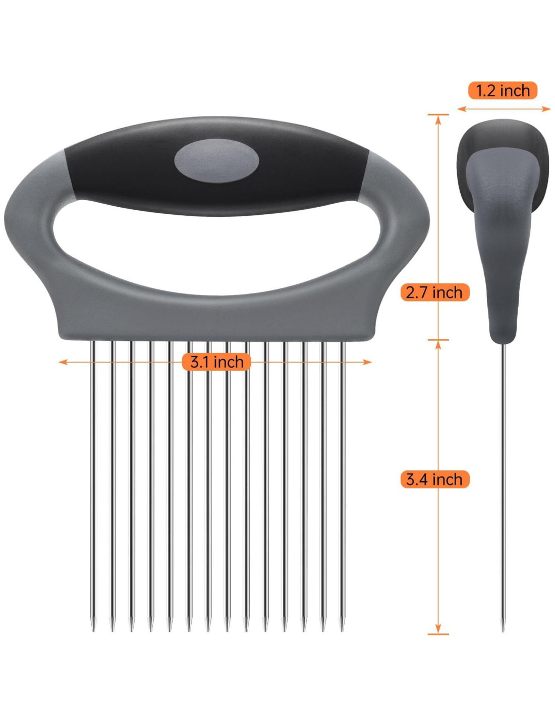 - Herramienta de Cortar Multifuncional - El cortador de cebolla YUNHOME cuenta con un diseño único con 10 tenedores de acero inoxidable bajo el mango, asegurando un agarre seguro y previniendo deslizamientos mientras se corta. Permite un corte uniforme y preciso de cebollas, tomates, limones y carnes. Ofreciendo una solución integral para tus necesidades de corte. El diseño promueve un corte uniforme, mejorando la presentación de tus platos y asegurando una cocción pareja para un toque profesional