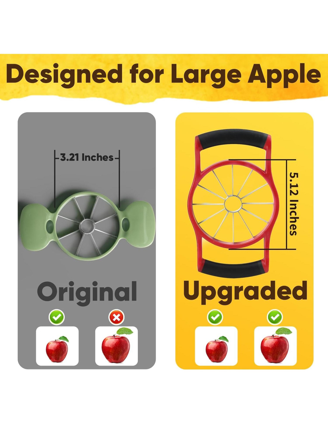 - 5.12 pulgadas Tamaño Súper Grande La tamaño de este cortador de manzanas es de 5.12 pulgadas (13,00 cm), que puede cortar fácilmente todo tipo de manzanas.