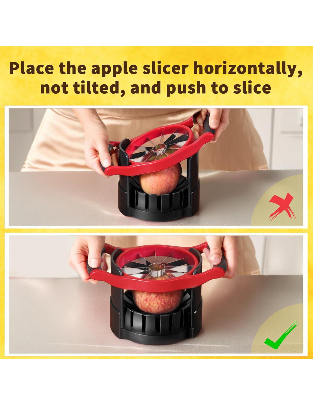 - Herramienta Esencial de Cocina Solo toma 5 segundos cortar 12 rodajas finas de manzanas. Es fácil de operar y adecuado para hacer varios alimentos y postres deliciosos. También se puede usar para cortar peras, papas, cebollas, pitayas, guayabas, etc. ¡Es un ayudante ideal en la cocina!