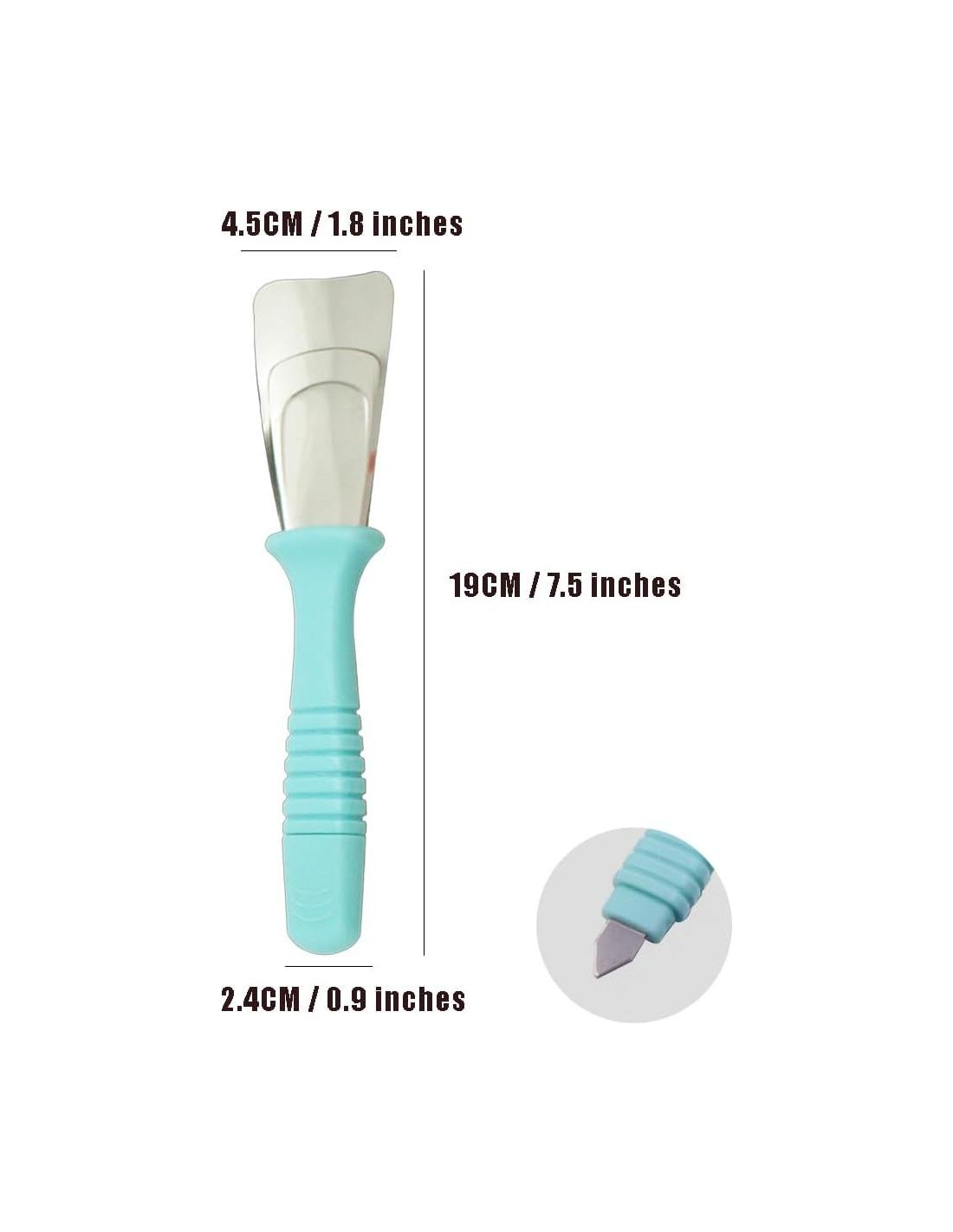 - Multifuncional: La pala de descongelación no solo es perfecta para descongelar congeladores, raspar parabrisas de automóviles, o usar para limpiar los rincones de la cocina y el baño. La pala de descongelación puede eliminar hielo y manejar verduras.