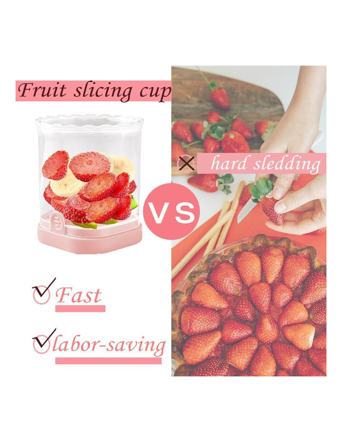 - Diseño Exclusivo: Sin Residuos de Alimentos, el cortador de vaso incluye una base inferior que empuja cualquier alimento atascado después de cortar. El diseño de gran capacidad te permite cortar múltiples fresas a la vez, convirtiéndolo en un gadget de cocina que ahorra tiempo y es ecológico.