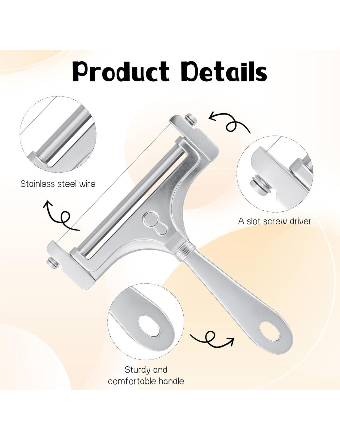 - Diseño Ajustable: Recibirás 1 pieza de cortador de queso de alambre, 1 pieza de llave y 4 alambres de acero. Nuestro Cortador de Queso asegura rebanadas suaves y uniformes de queso duro cada vez. El tornillo ajustable te permite personalizar el grosor de tus rebanadas sin esfuerzo.