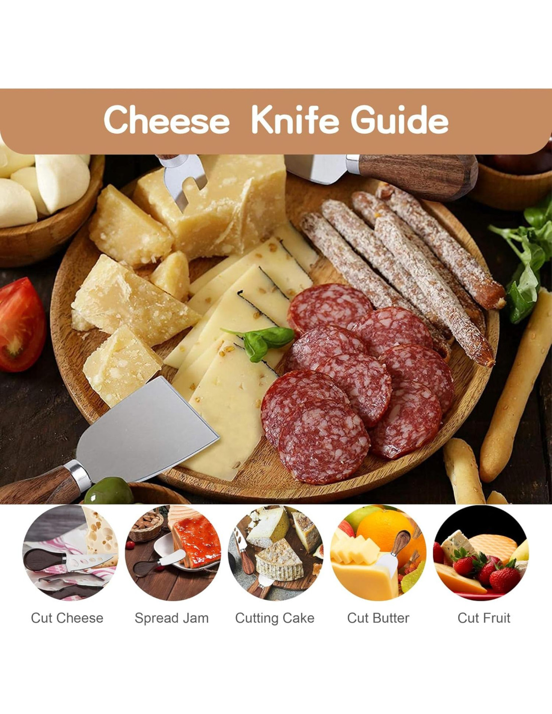 - [AMPLIA APLICACIÓN] : Los accesorios para tabla de queso se pueden utilizar ampliamente en horneado en panaderías, cocina diaria, elaboración de queso y parrilladas al aire libre, y acampadas. Perfecto como regalo para vacaciones, inauguraciones, fiestas de cumpleaños, Navidad, baby showers, Día del Padre, Día de la Madre y más.