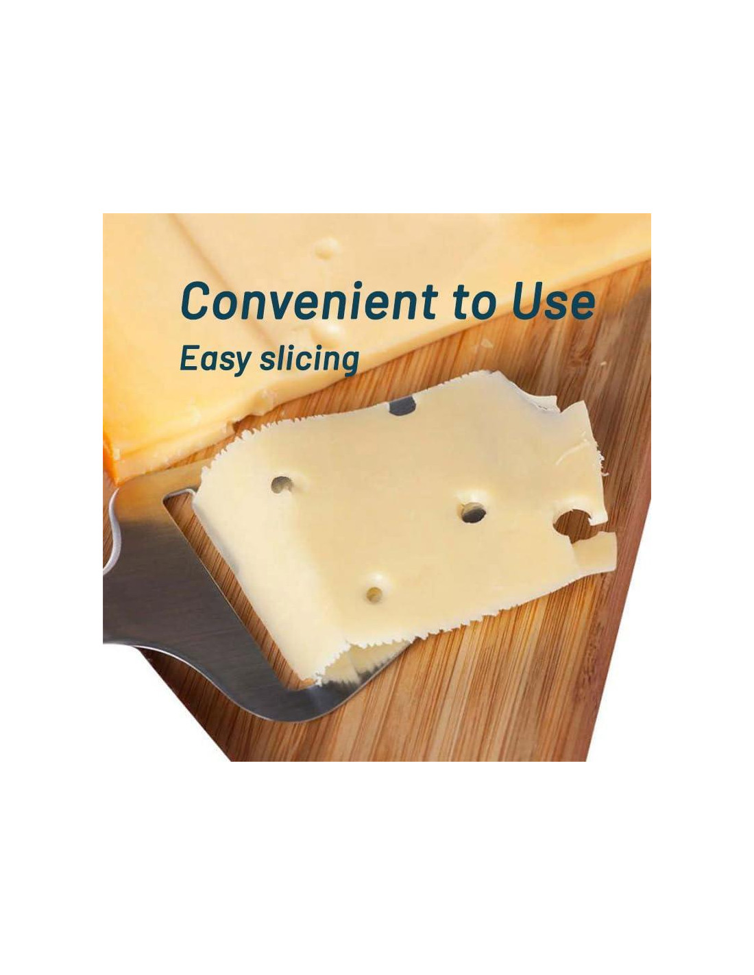 - Compañero de Cocina Versátil: No solo limitado al queso, este cortador de mano es una herramienta multipropósito que también se puede usar para cortar jamón, servir como espátula para pasteles, o hacer bandejas y sándwiches de queso. Su cabeza de pala suave y plana te permite recoger y mover piezas cortadas sin dificultad, ayudándote a crear deliciosas rebanadas de queso para los sándwiches de los niños o añadiendo el toque perfecto a las bandejas de cena familiar.