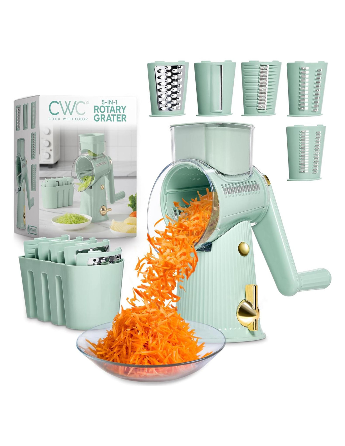 - Rallador de Manivela: ¡Di adiós a los gadgets eléctricos! Nuestro rallador de manivela es fácil de usar y te da control total sobre tu rallado. ¡Perfecto para aquellos que aman un enfoque práctico en la cocina!