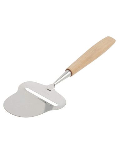 El cortador de queso de acero inoxidable Norpro BS3A proporciona una forma fácil de cortar en rodajas finas quesos semiduros y duros. Cuenta con una hoja de acero inoxidable y un mango de madera cómodo para un agarre fuerte y fácil. Mide 22 cm (8.75 pulgadas). Hecho en Noruega.
