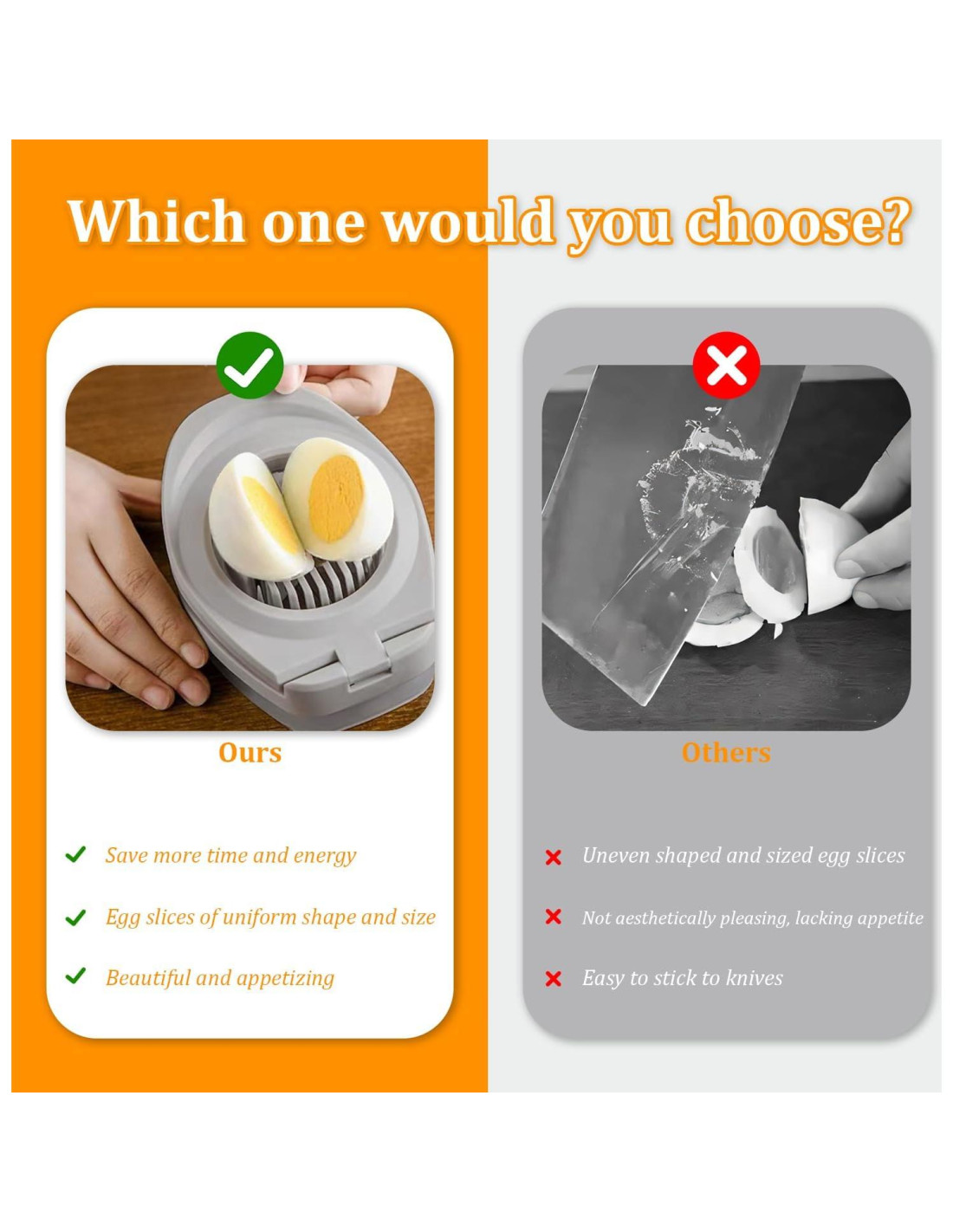 - Cortador de Alimentos: Los alambres del cortador de huevos están hechos de acero inoxidable resistente, lo que te permite cortar rápidamente huevos y alimentos blandos. El cortador de huevos está hecho de material plástico ABS duradero para la base y el mango, asegurando seguridad y longevidad.