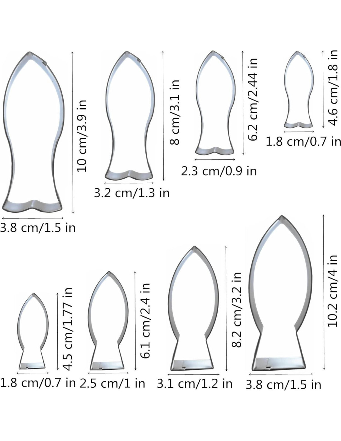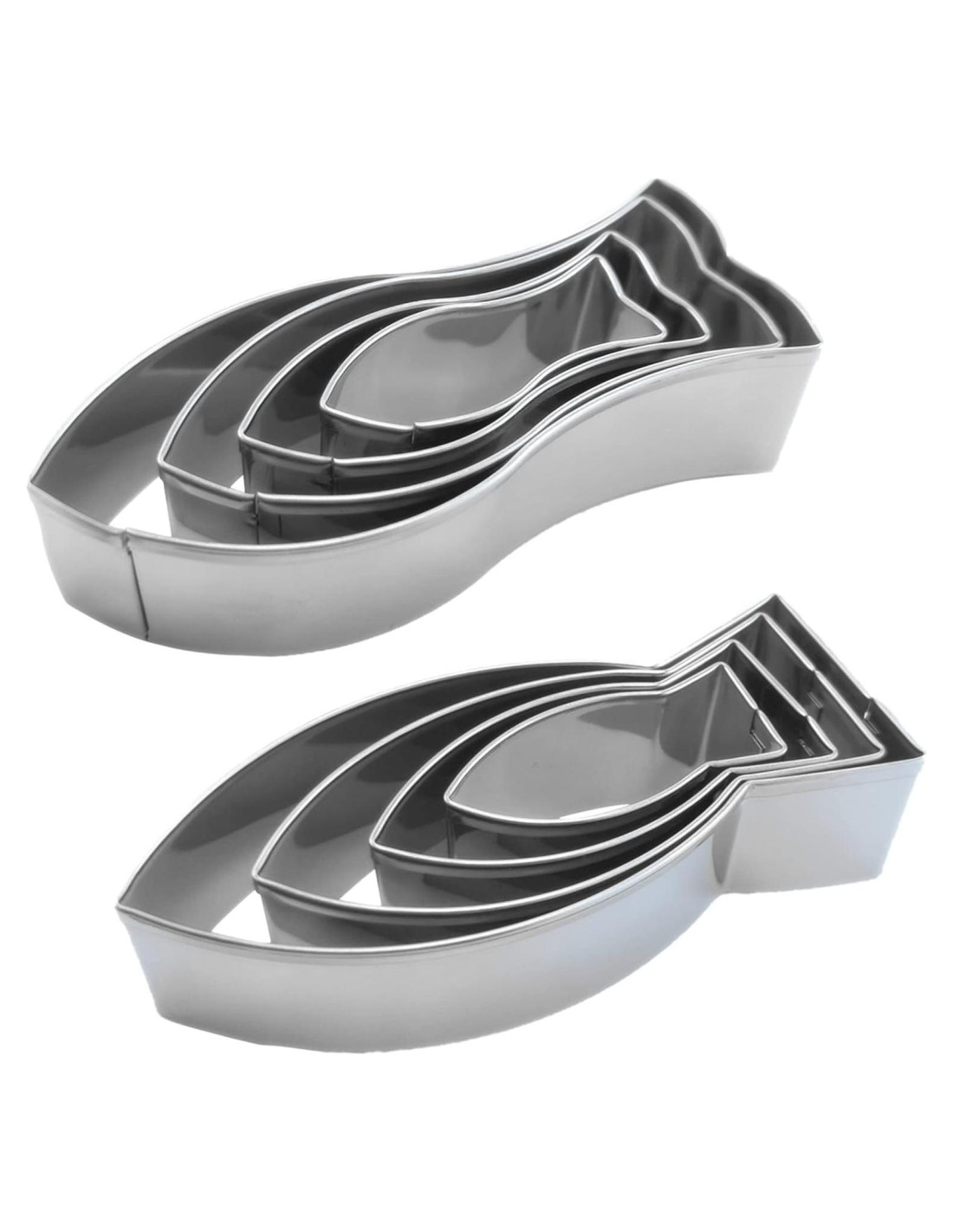 - VARIEDAD DE TAMAÑOS DE FORMAS DE PEZ: 8 piezas en un juego de cortadores de galletas en forma de pez, para obtener más diversión en la elaboración de galletas: 4 piezas de pez de cola de tenedor + 4 piezas de pez de cola plana.