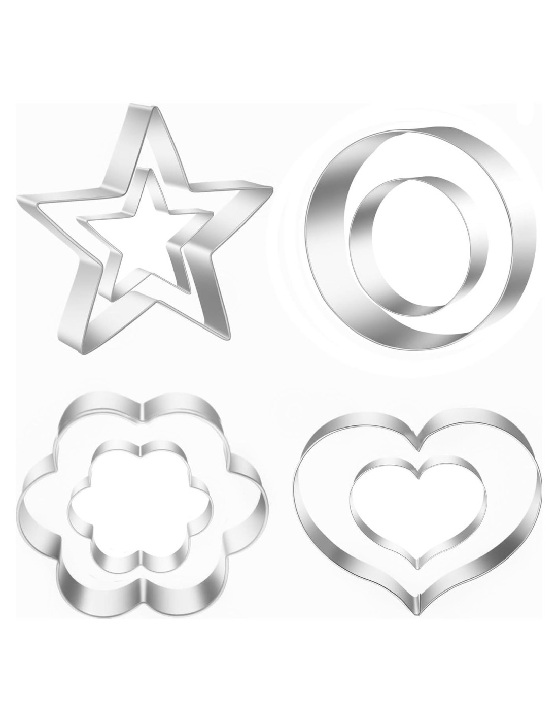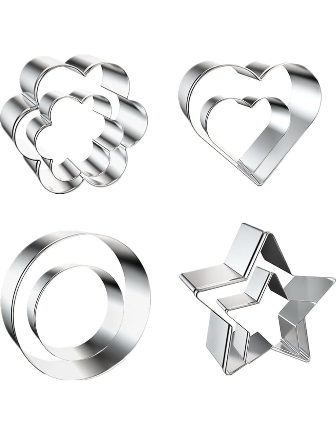 Juego de 8 Cortadores de Galletas de Metal en Formas de Corazón, Flor, Estrella y Redonda para Hornear, Acero Inoxidable