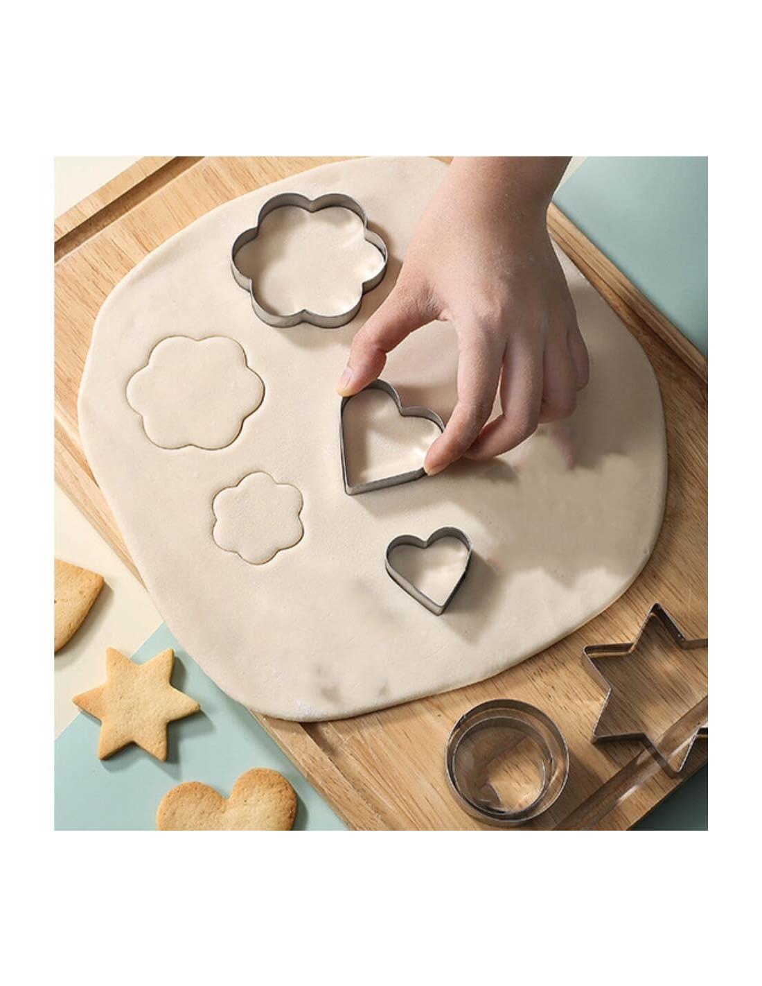 - Juego de 8 Cortadores de Galletas de Metal en Formas de Corazón, Flor, Estrella y Redonda para Hornear. Conveniente y fácil de almacenar, una herramienta esencial para la cocina. Un regalo perfecto para la familia, pareja y amigos que aman hornear.